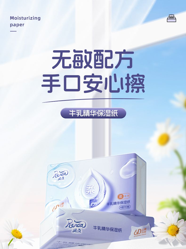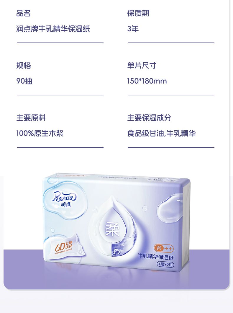 商品名称:润点 牛乳精华保湿巾 4层90抽