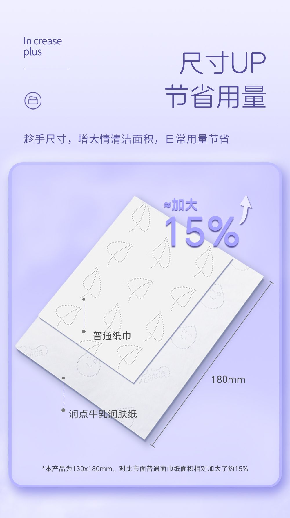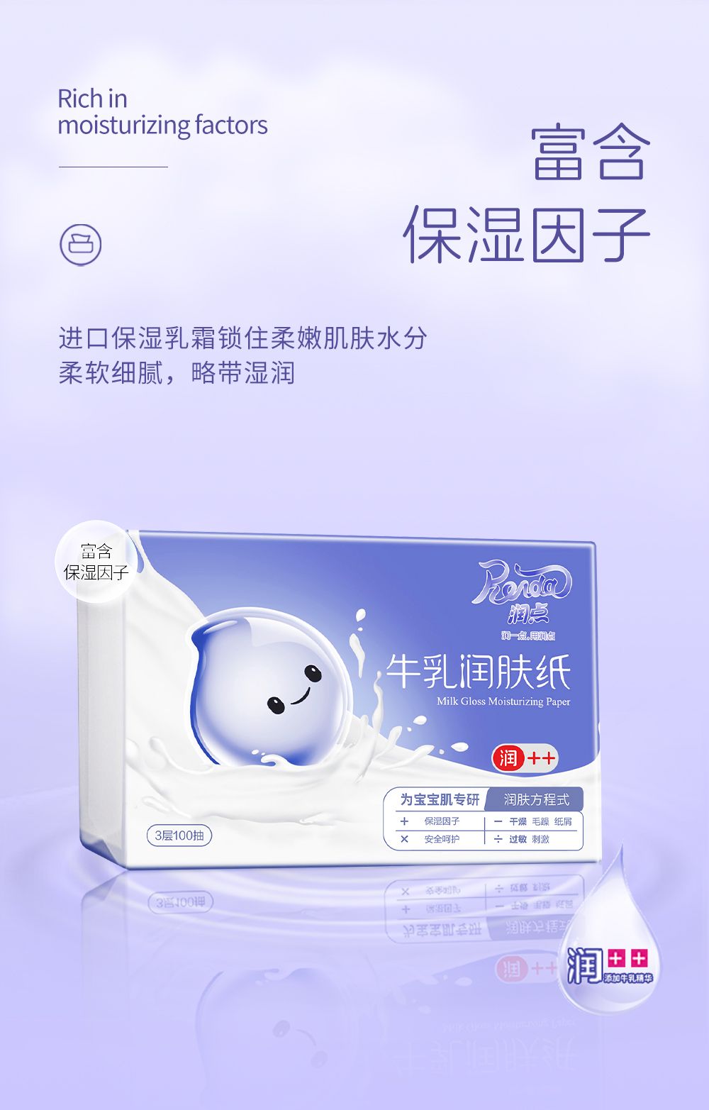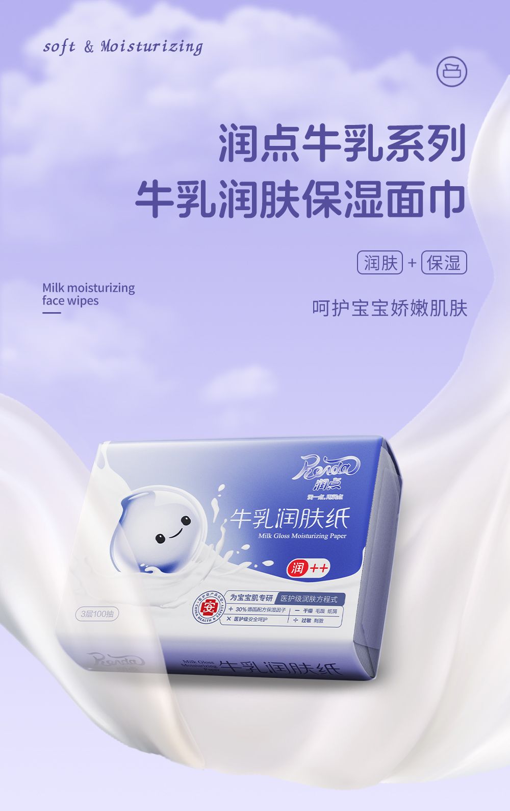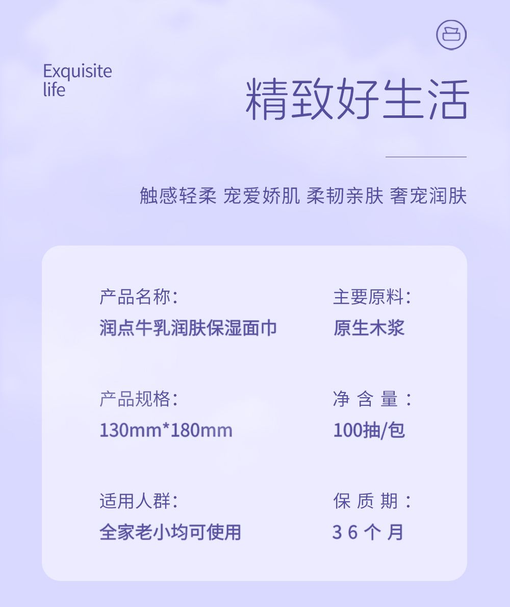 商品名称:润点 牛乳润肤保湿面巾 3层100抽