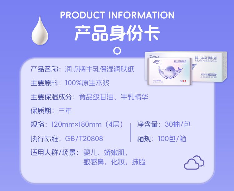 商品名称:润点 牛乳润肤纸 4层30抽10包
