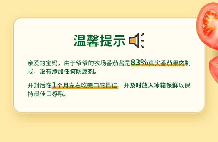 商品名称:爷爷的农场 儿童柔和番茄酱 310g