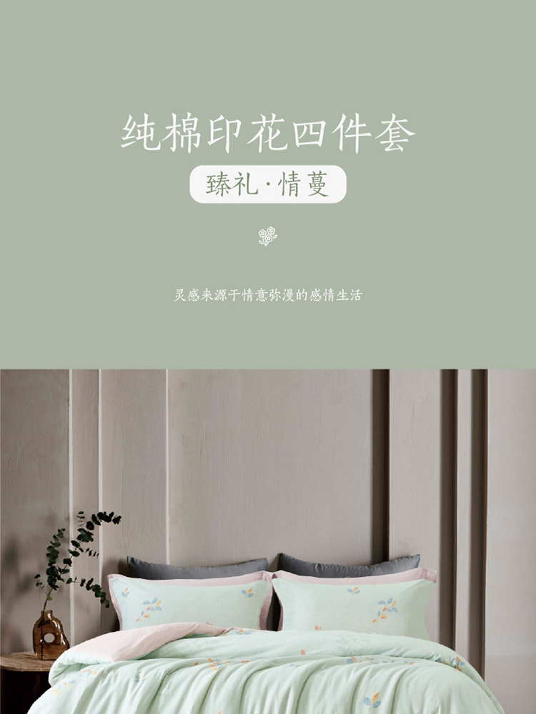 梦洁臻礼情蔓纯棉印花床品四件套200*230cm