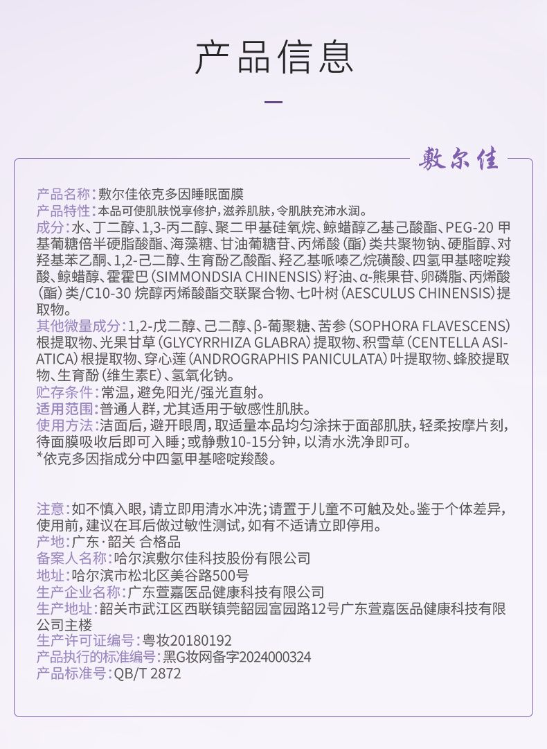 商品名称:敷尔佳 依克多因睡眠面膜依克多因睡眠面膜 100ml