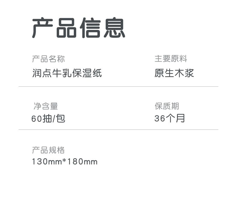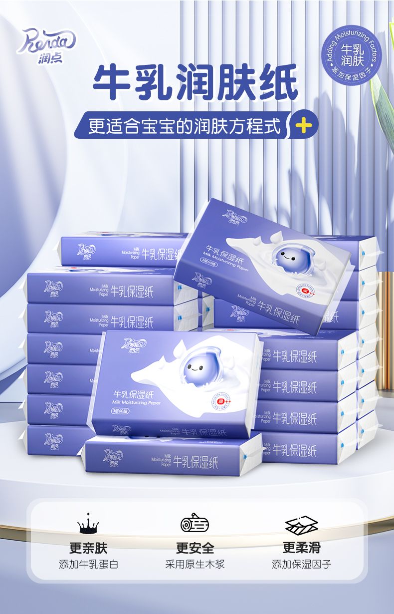 商品名称:润点 牛乳保湿纸 3层60抽24包装