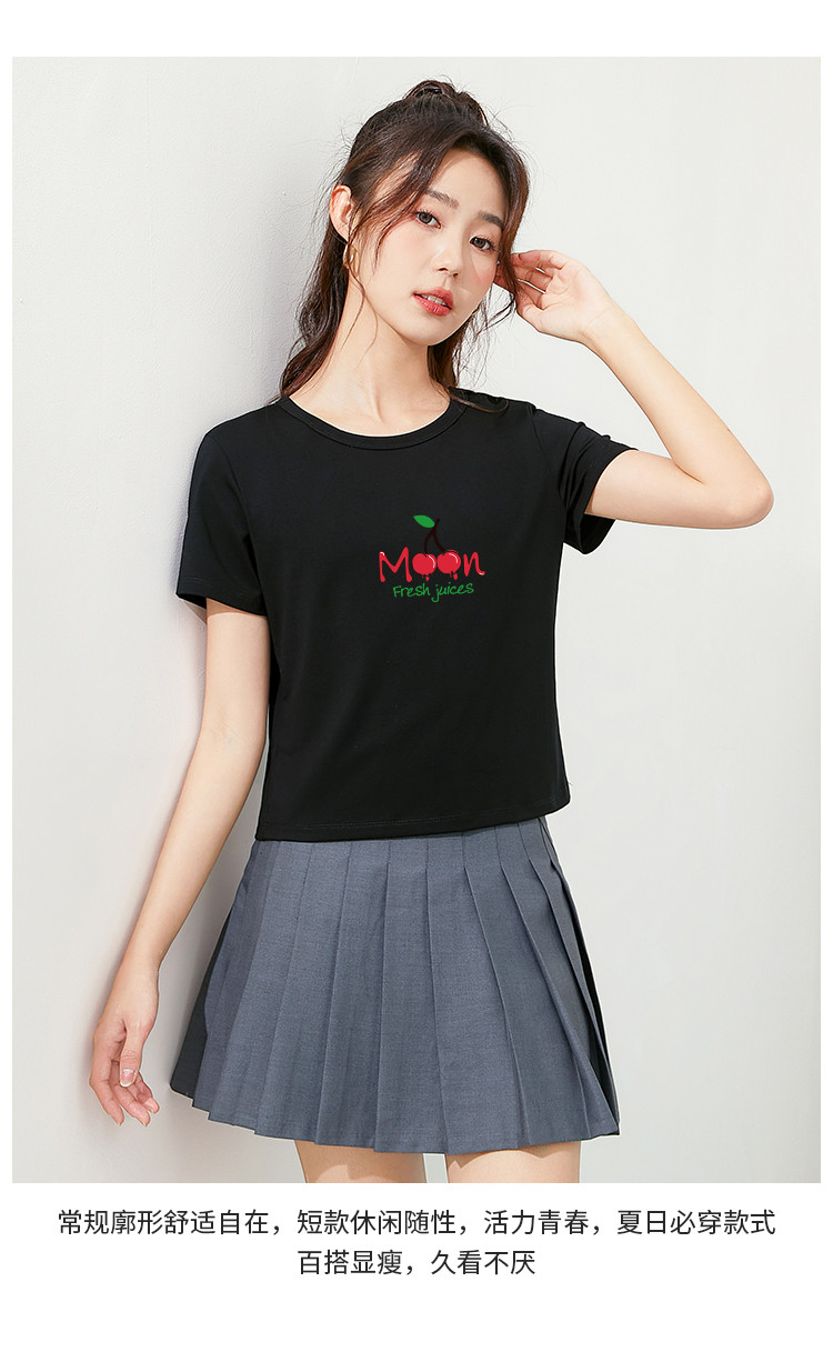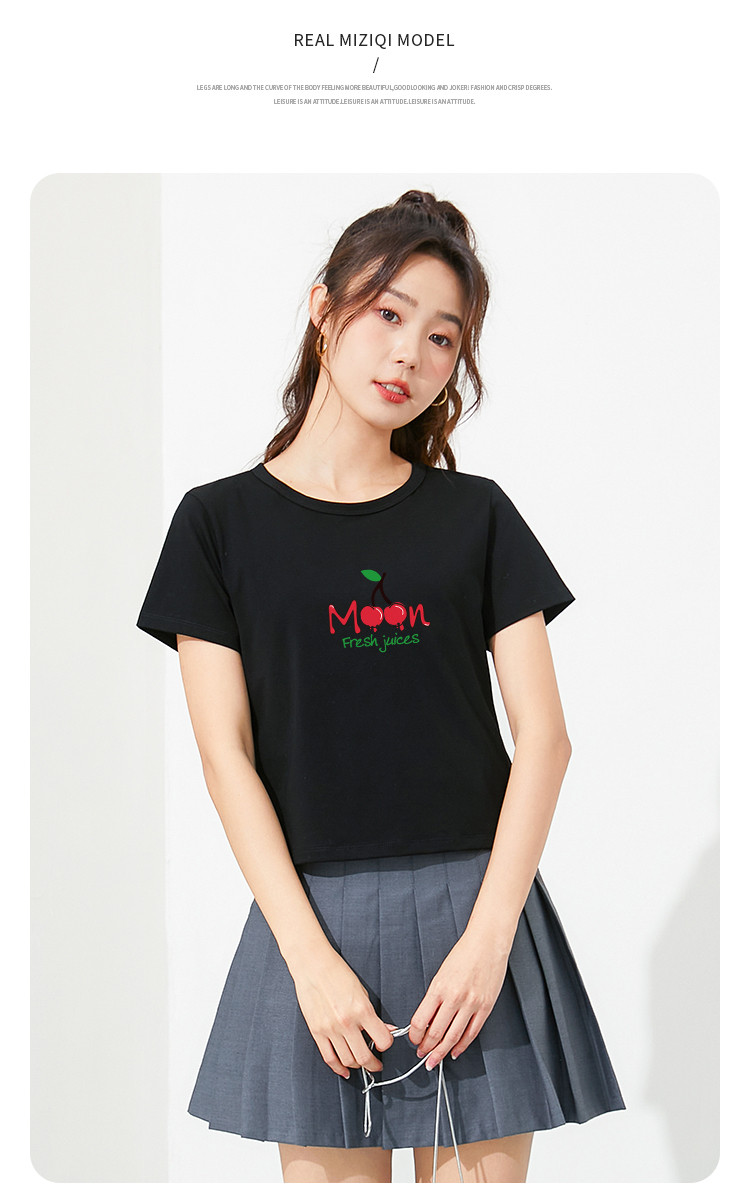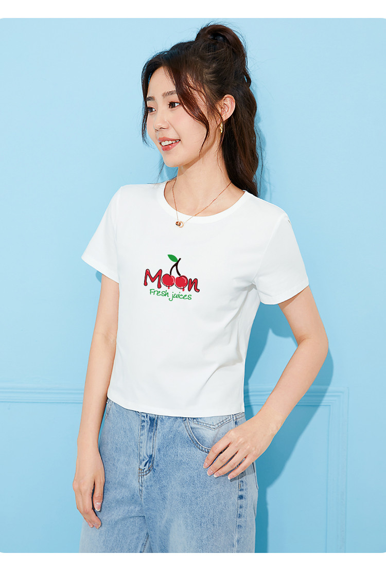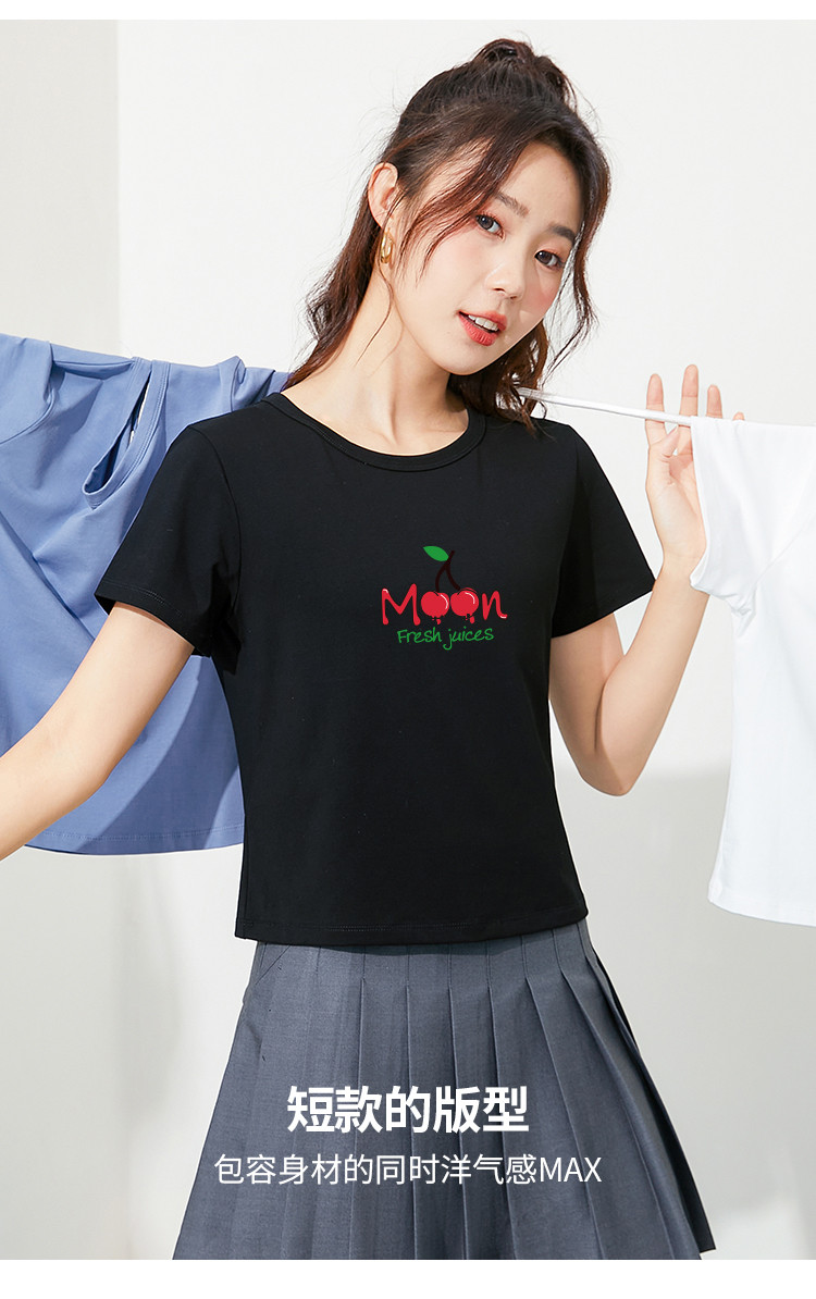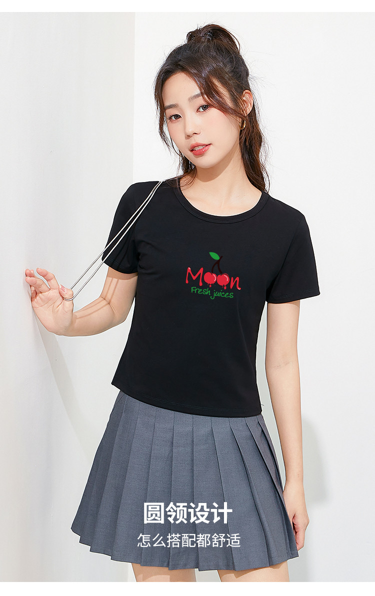 商品名称:米子旗夏季款圆领女式T恤樱桃印花修身短款短袖上衣女 191962