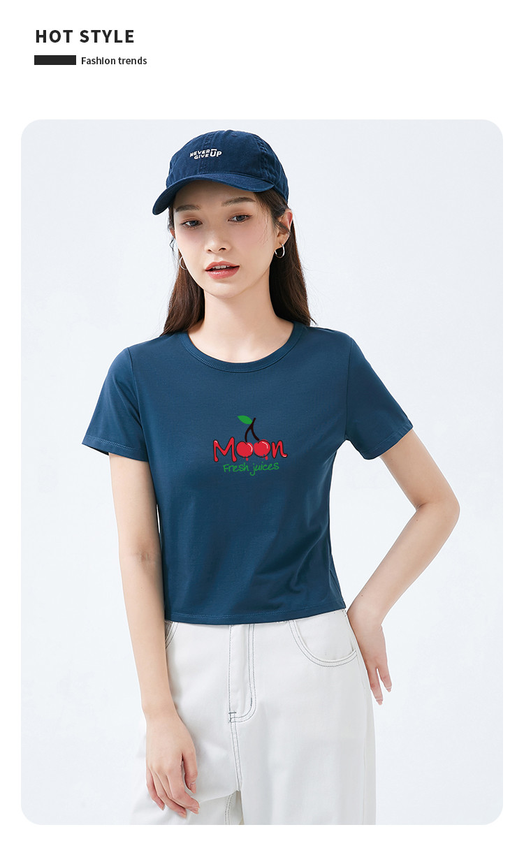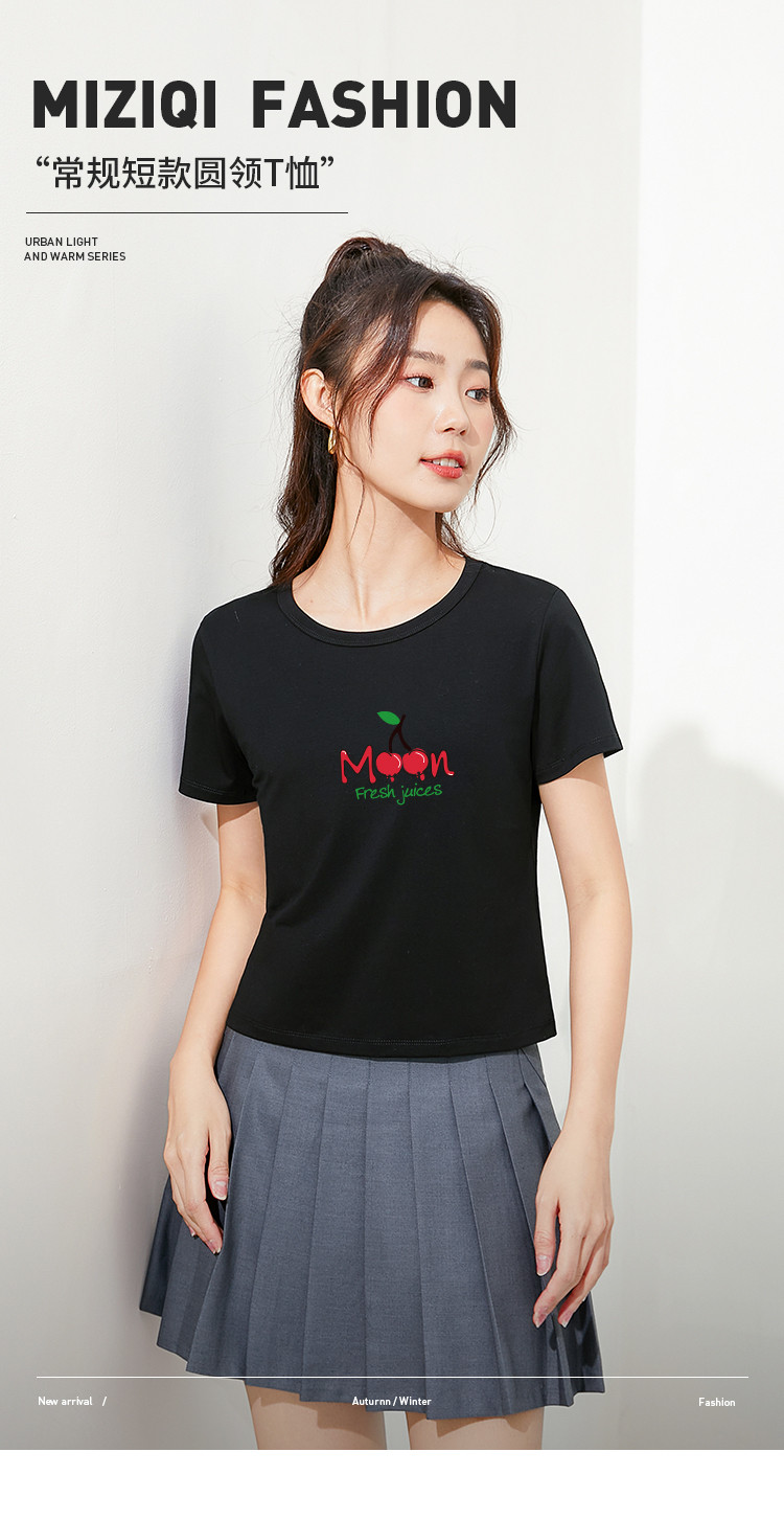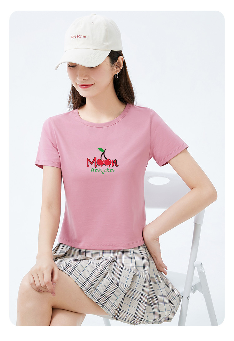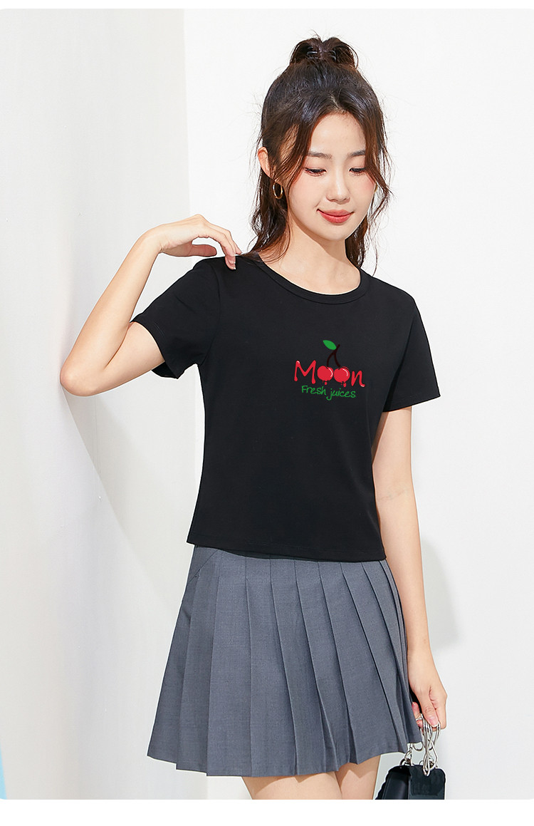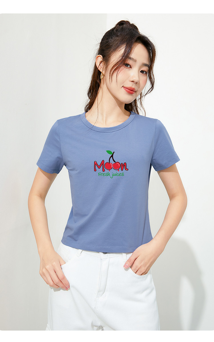商品名称:米子旗夏季款圆领女式T恤樱桃印花修身短款短袖上衣女 191962
