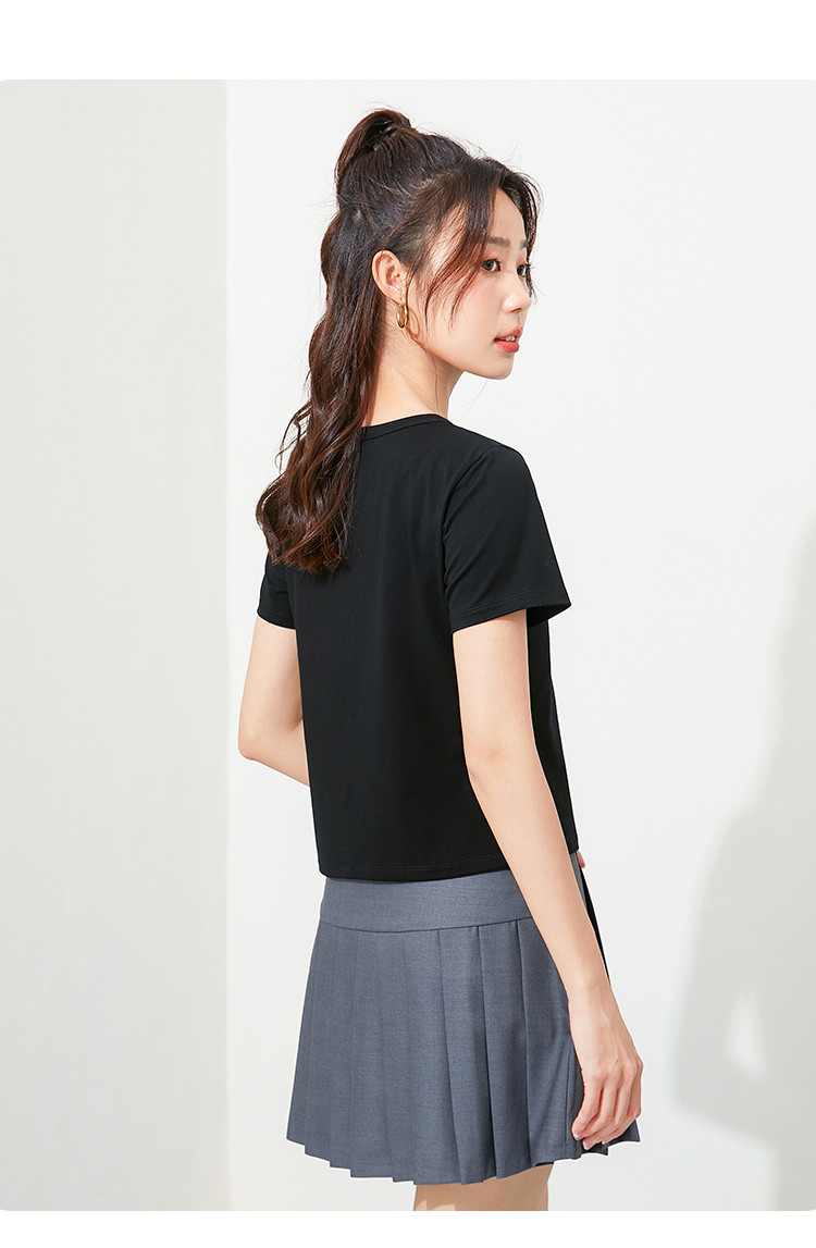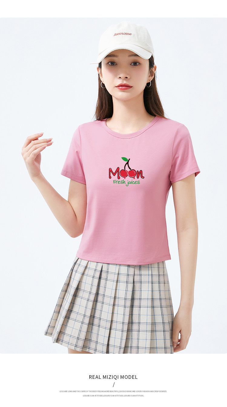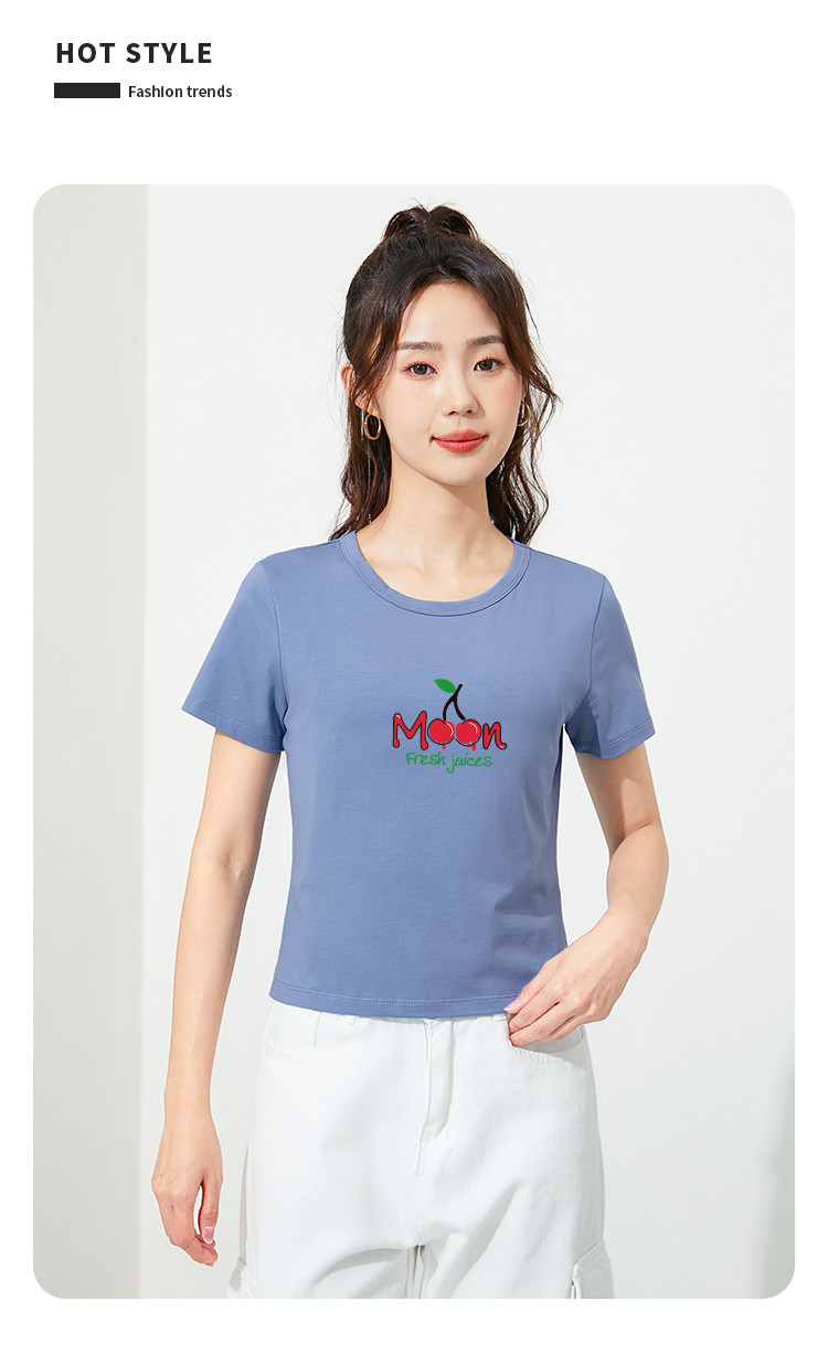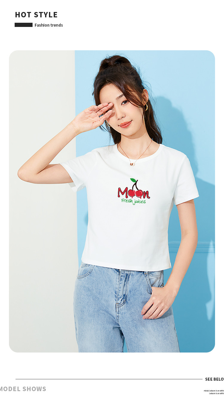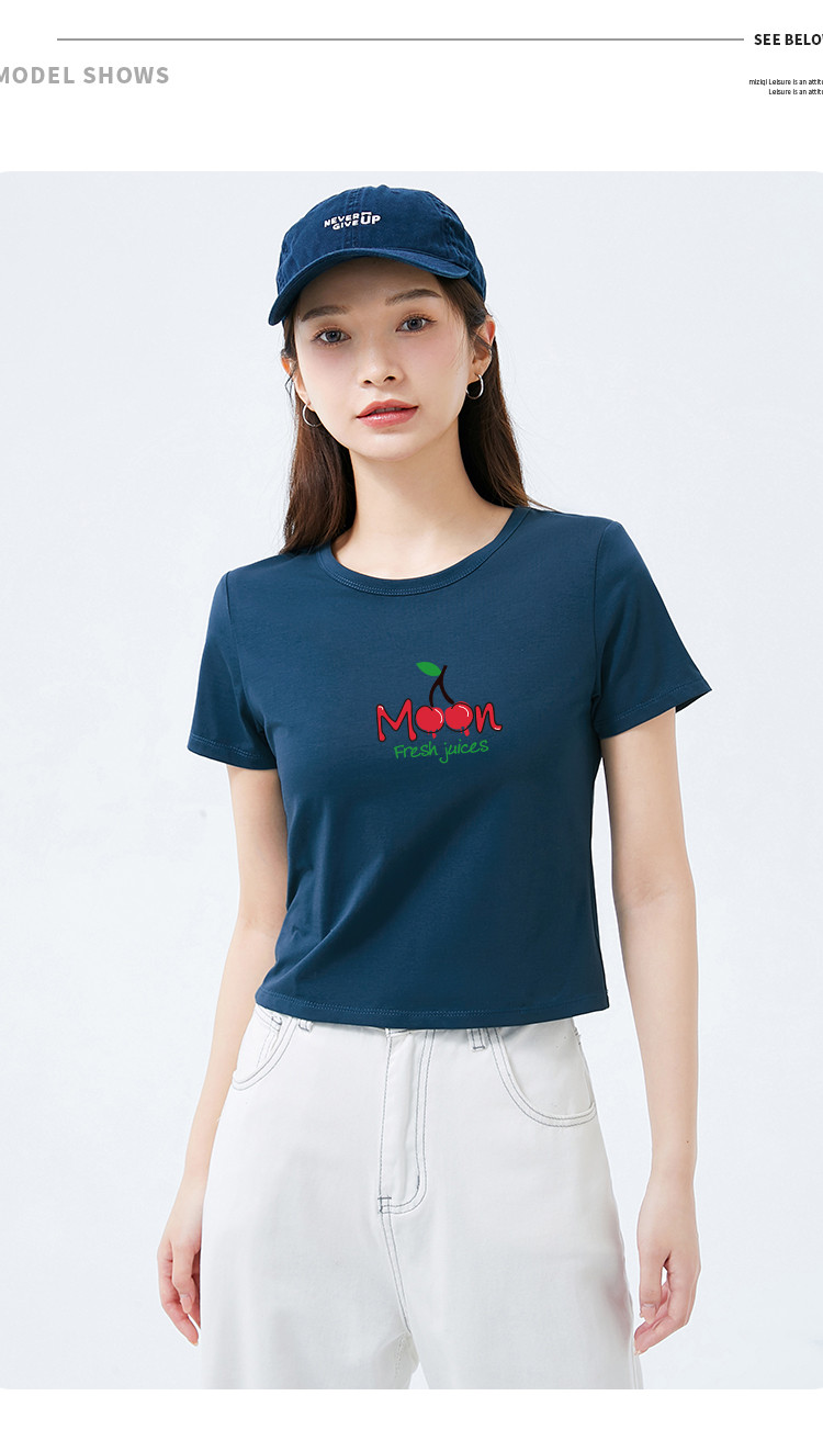 商品名称:米子旗夏季款圆领女式T恤樱桃印花修身短款短袖上衣女 191962