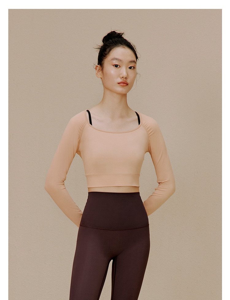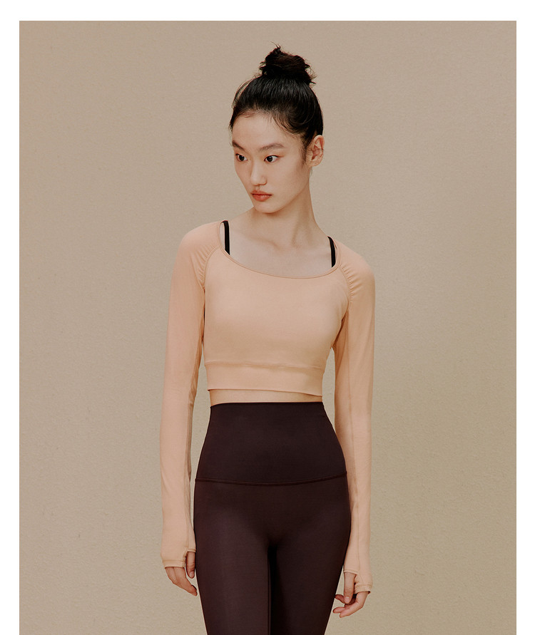 ACTIVE 舞蹈短款长袖贴身T恤复古简约亲肤拇指洞短上衣 787786