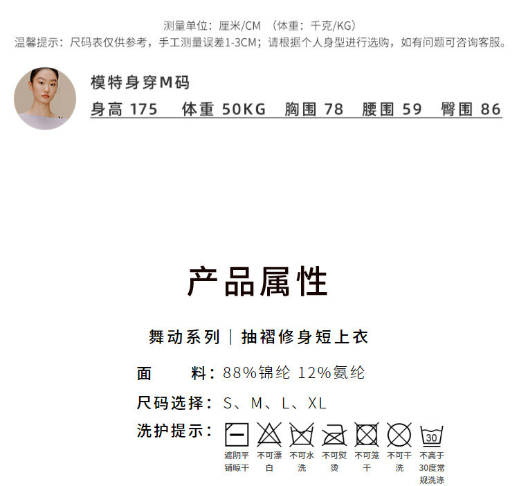 商品名称:ACTIVE 舞蹈短款长袖贴身T恤复古简约亲肤拇指洞短上衣 787786