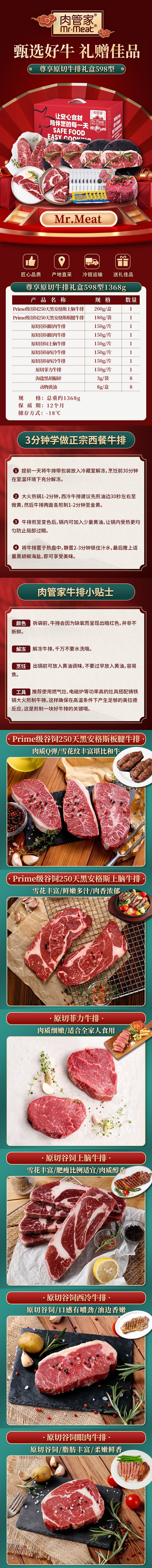 商品名称:肉管家 尊享原切牛排礼盒598型1368g