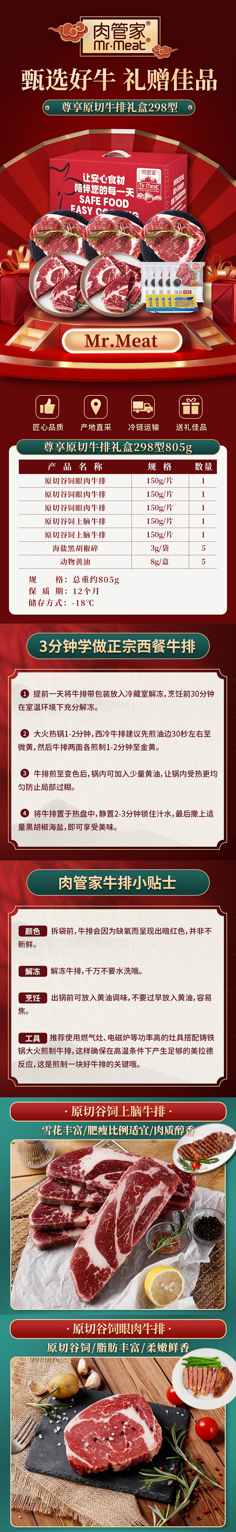 商品名称:肉管家 尊享原切牛排礼盒298型805g