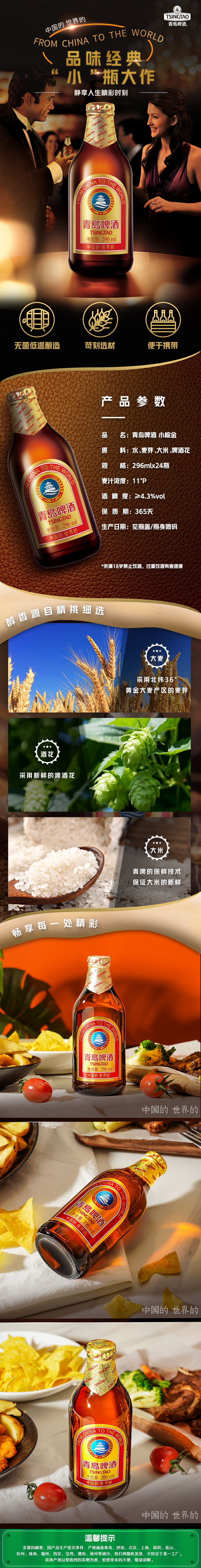 商品名称:青岛啤酒 11度296ml*24瓶棕金箱啤