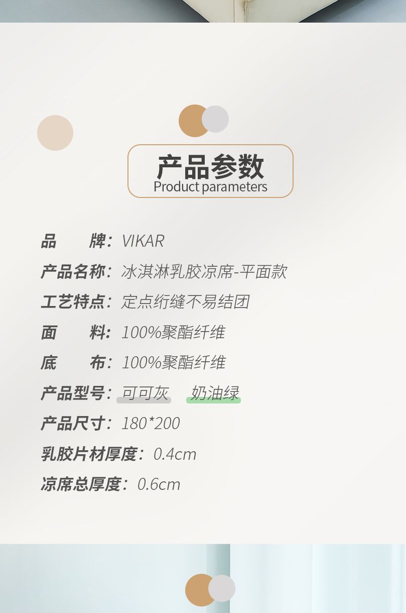 商品名称:"VKA043-VIKAR 冰淇淋乳胶凉席-平面款 (0.5厚度 )-可可灰"