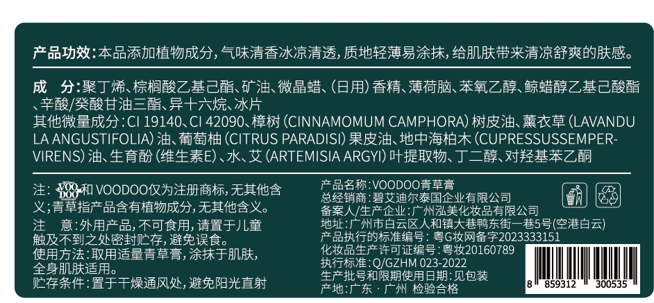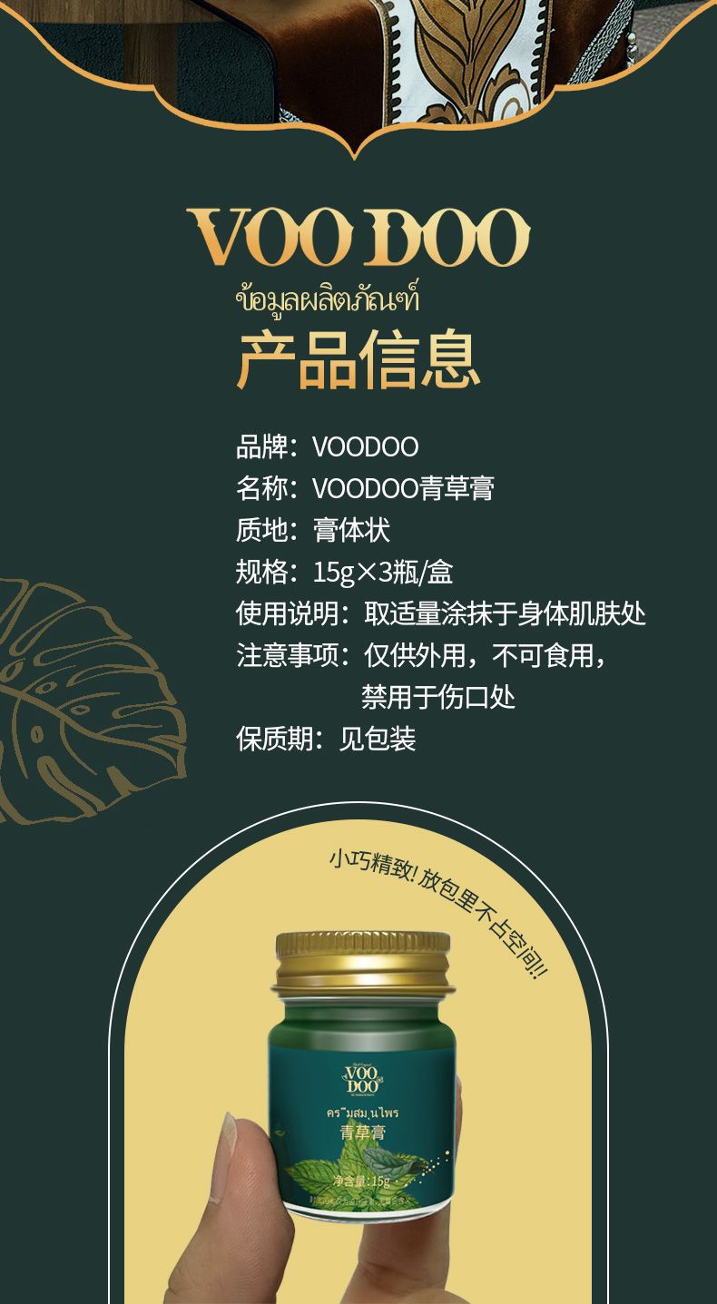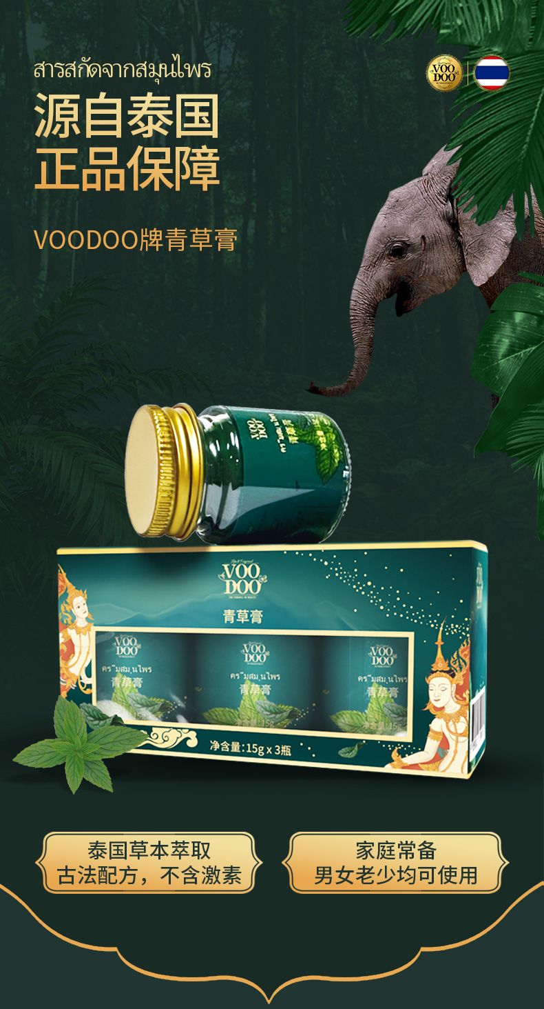 商品名称:VOODOO 青草膏3瓶/盒