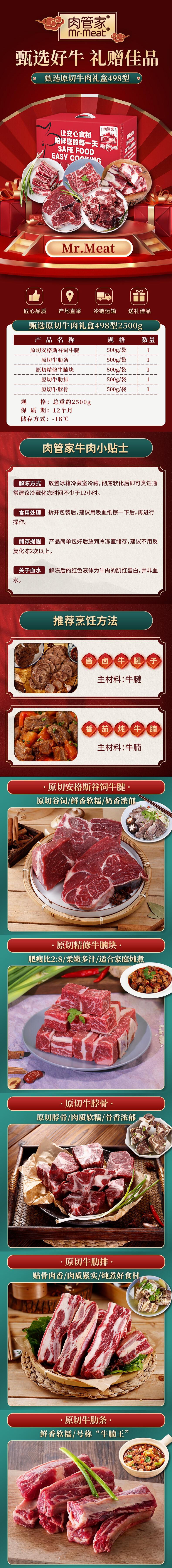 商品名称:肉管家 甄选原切牛肉礼盒498型2500g