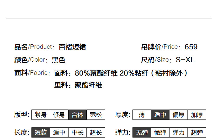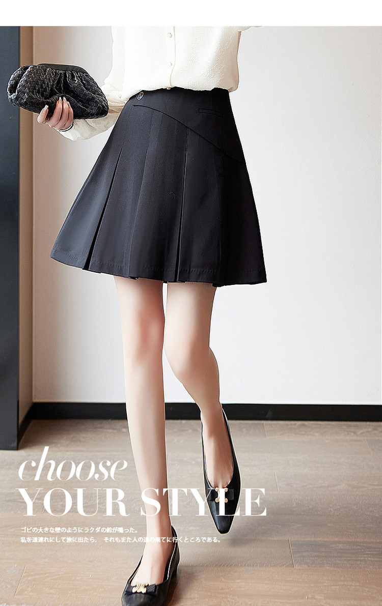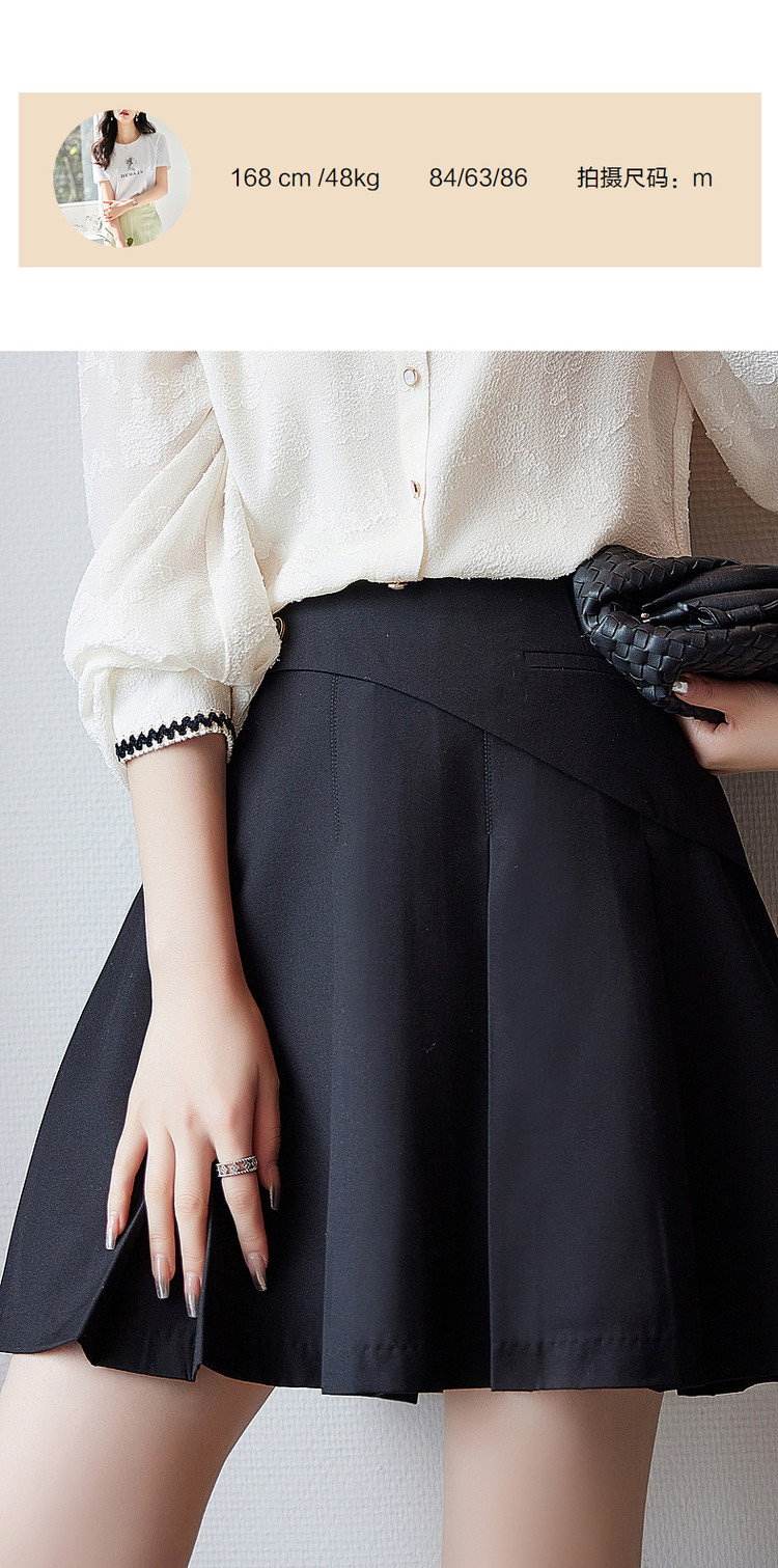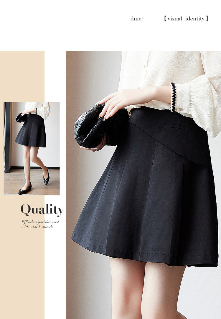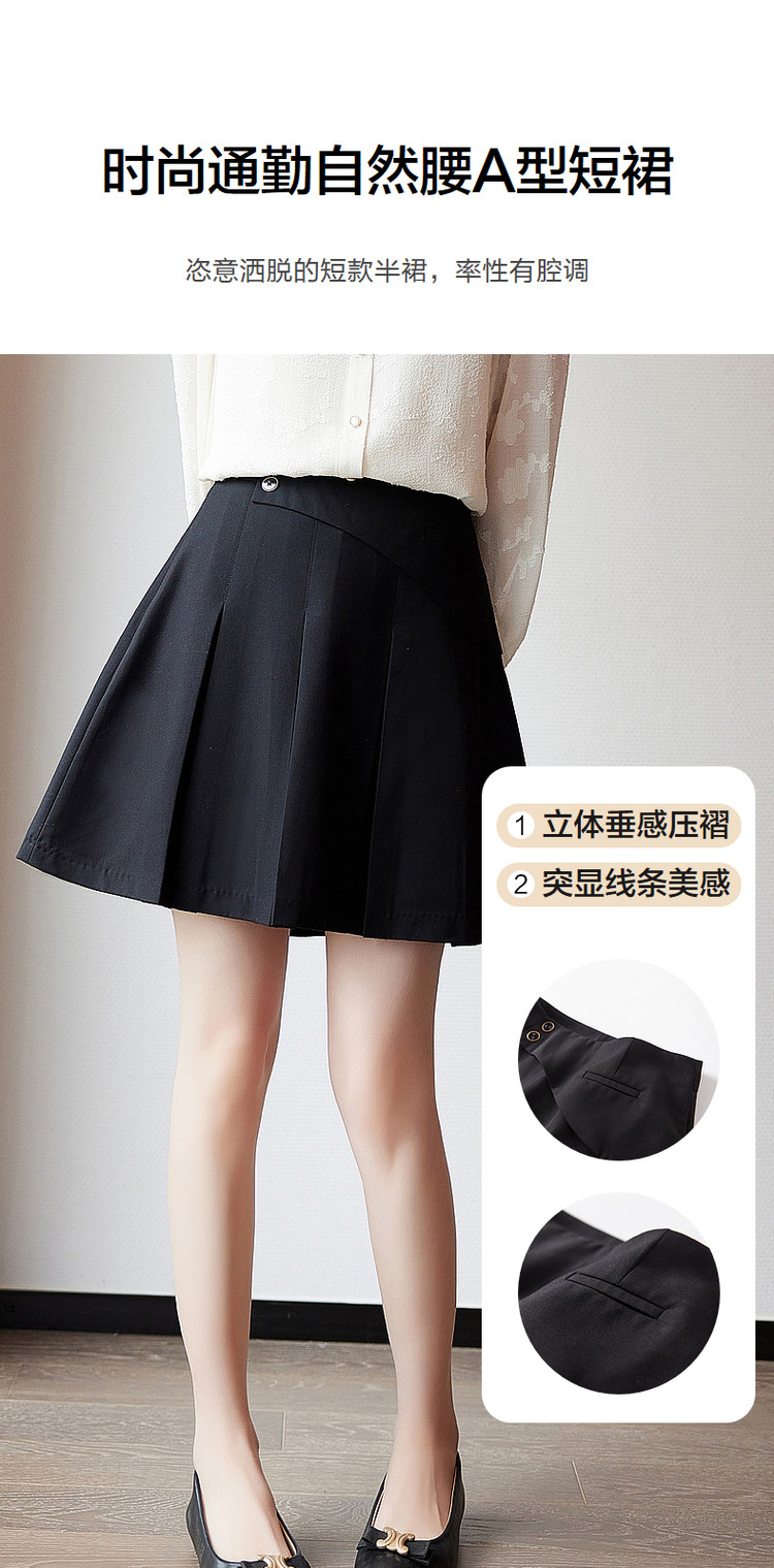 商品名称:【通勤压褶a字半裙】秋中腰TR拉链半身裙女短款 157889