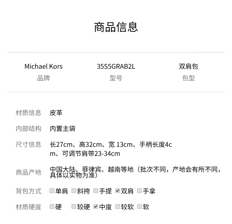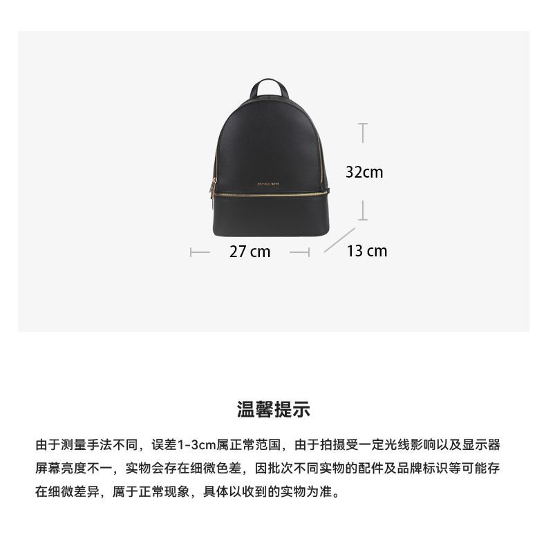 商品名称:Michael Kors 奥莱款 Rhea 中号女士皮革纯色双肩包 35S5GRAB2L BLACK
