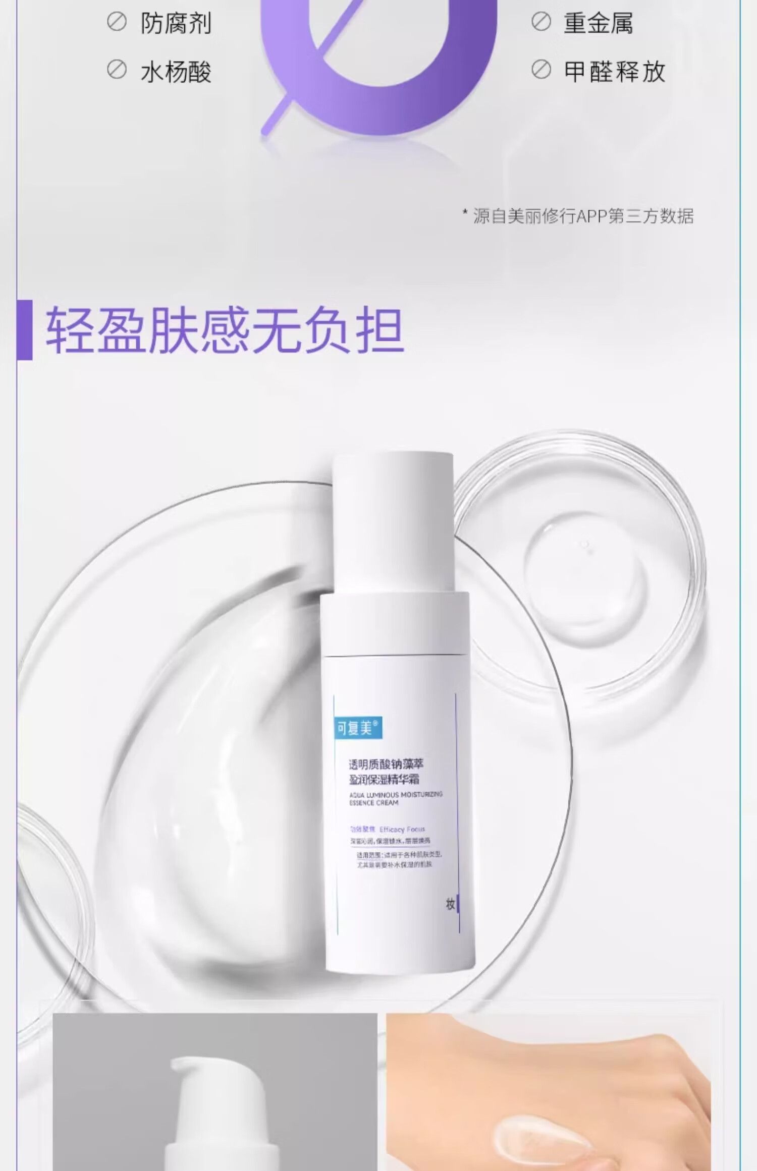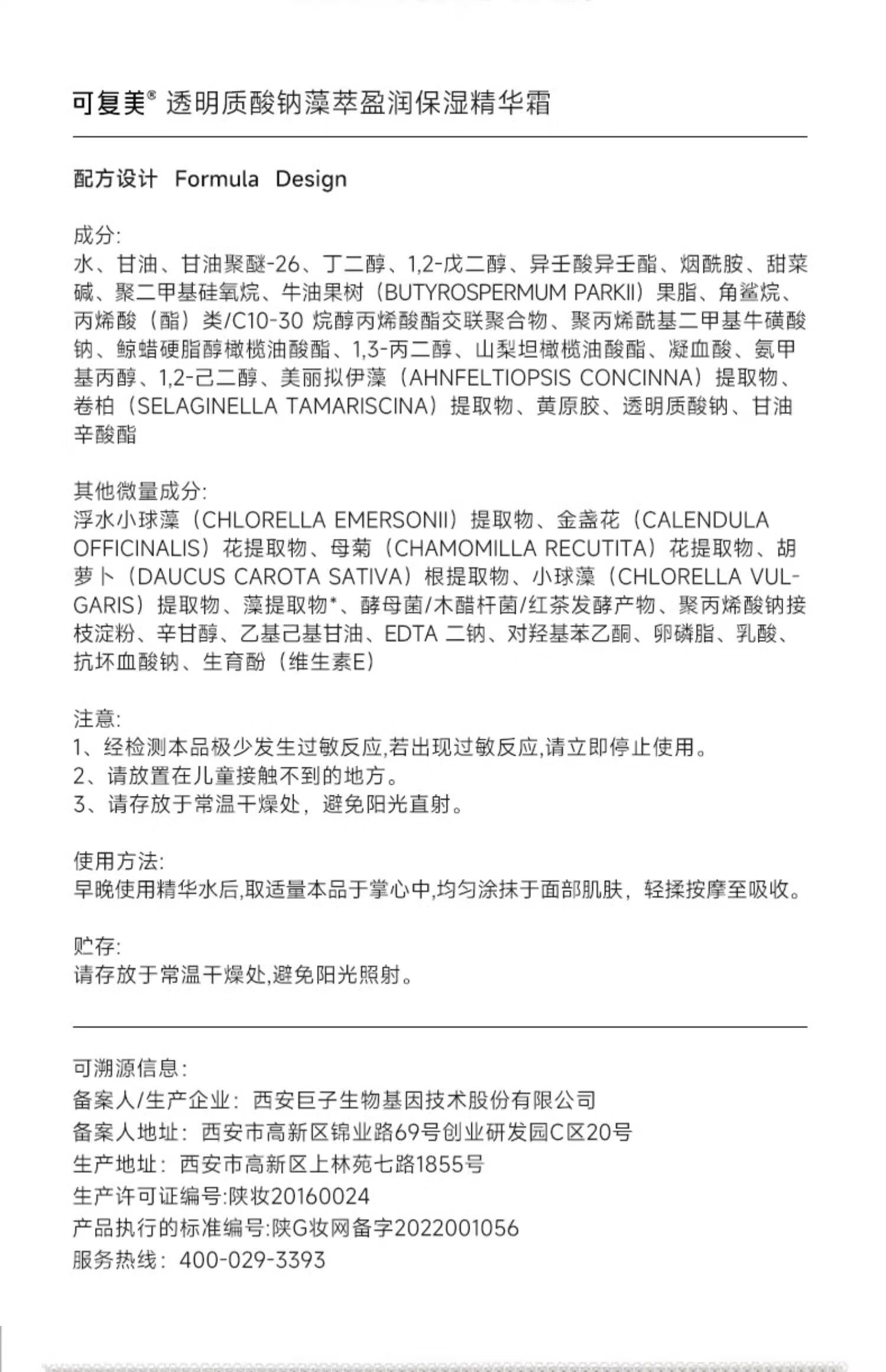 商品名称:可复美 吨吨霜透明质酸钠藻萃盈润保湿精华霜 50g