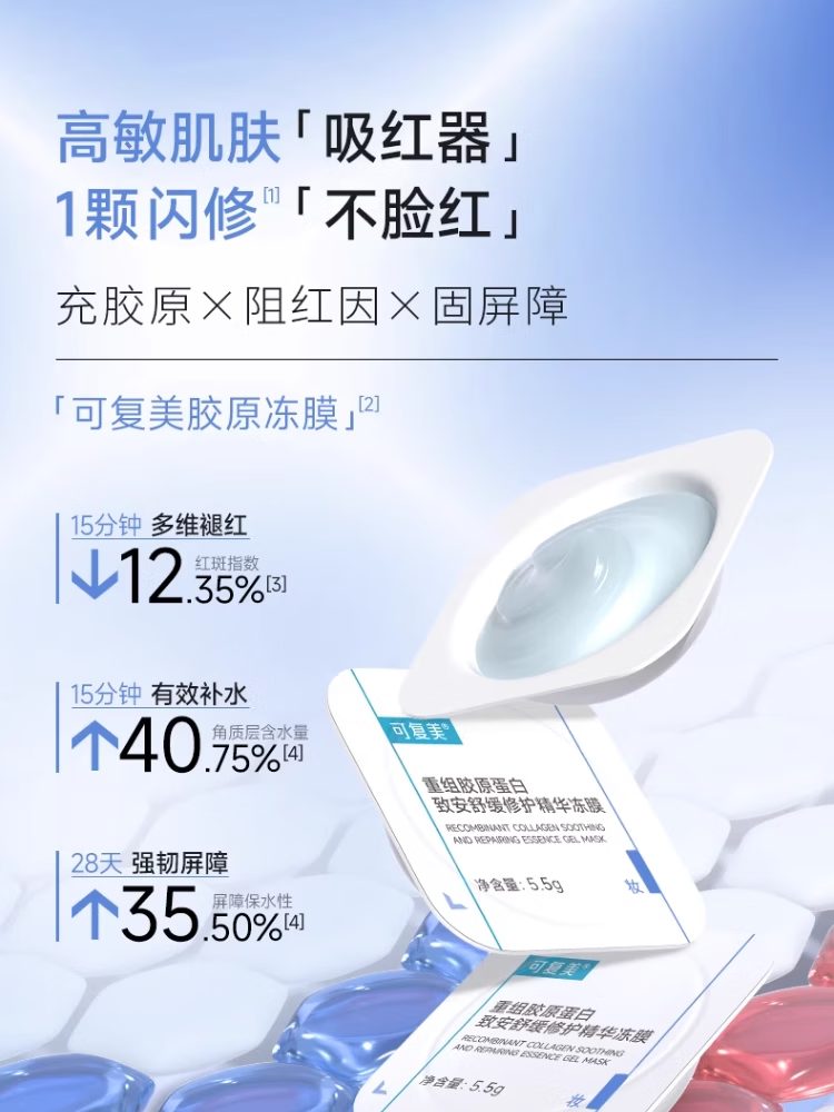 商品名称:可复美 胶原冻膜重组胶原蛋白致安舒缓修护精华冻膜 10颗/盒