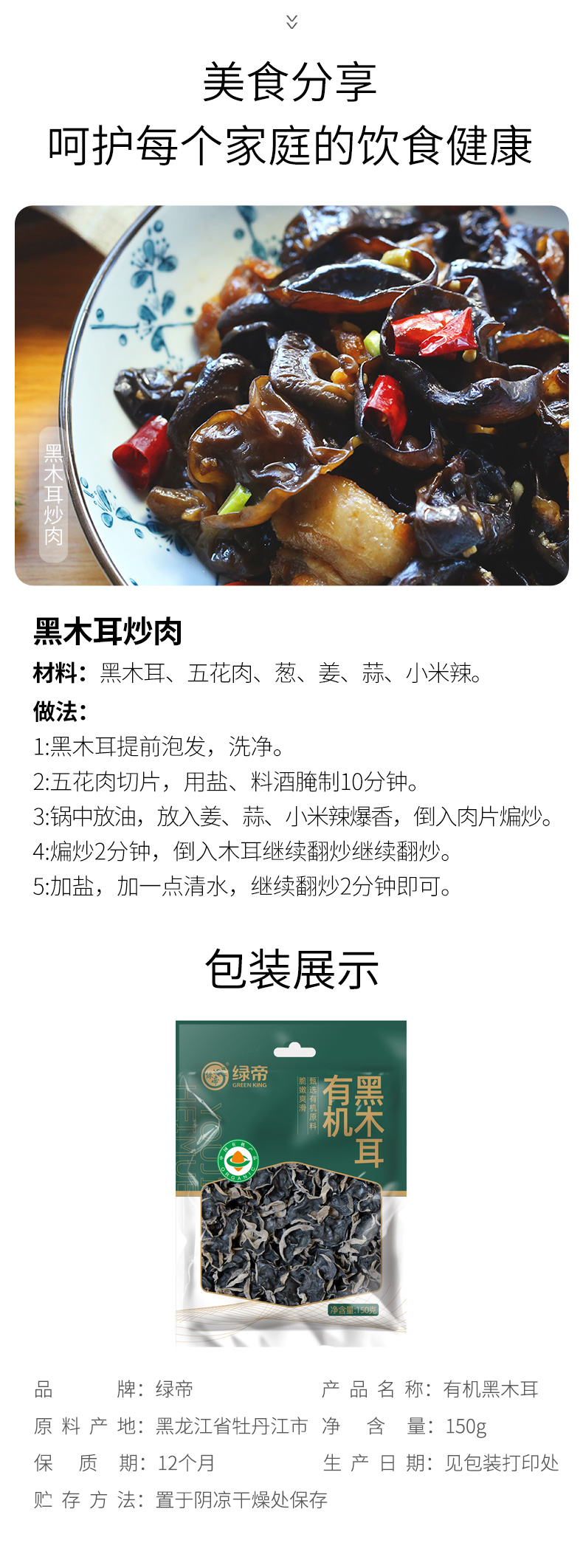 商品名称:GREEN KING/绿帝有机黑木耳150g