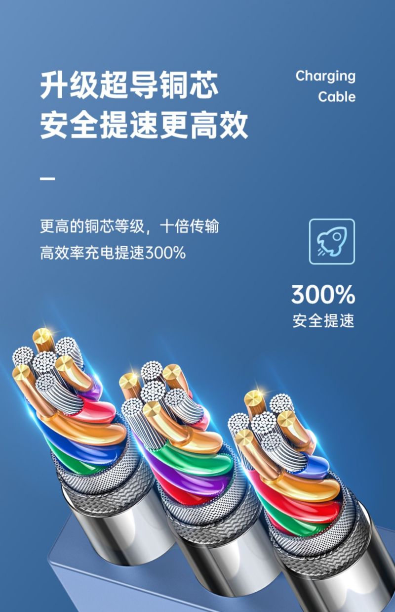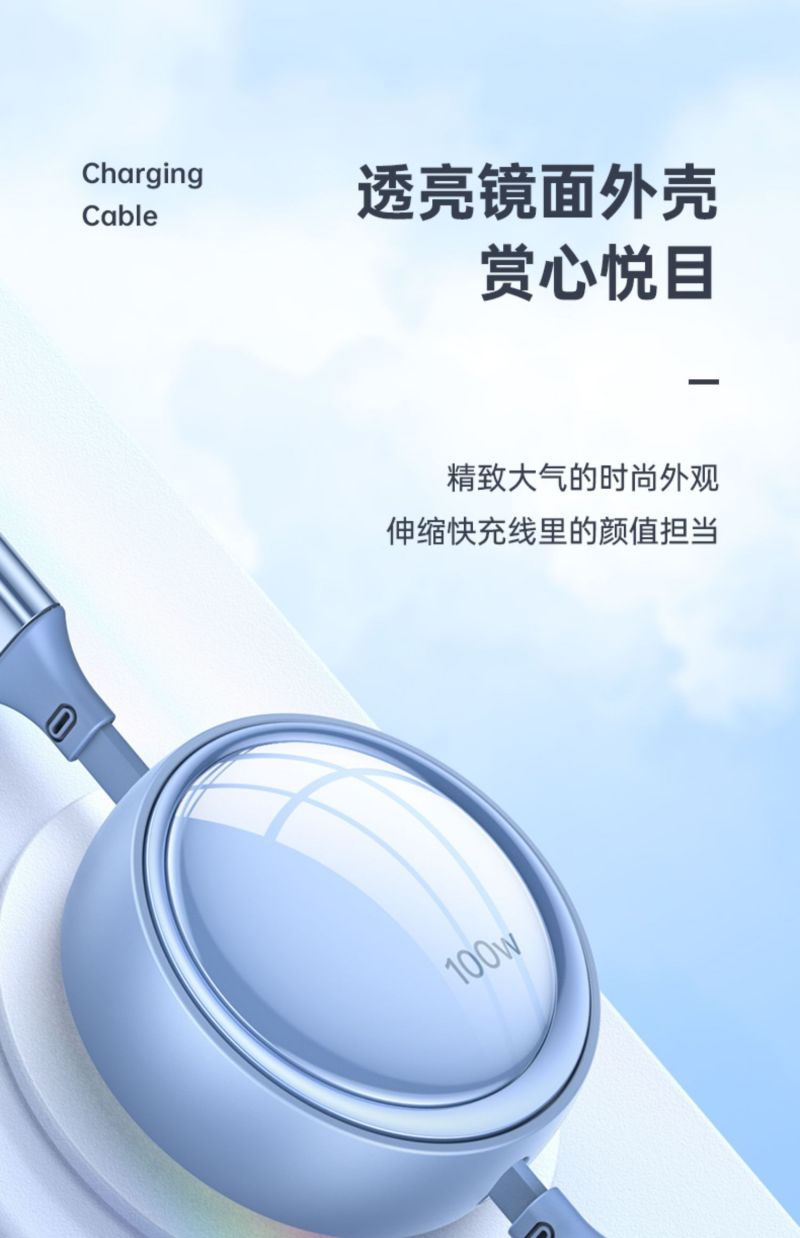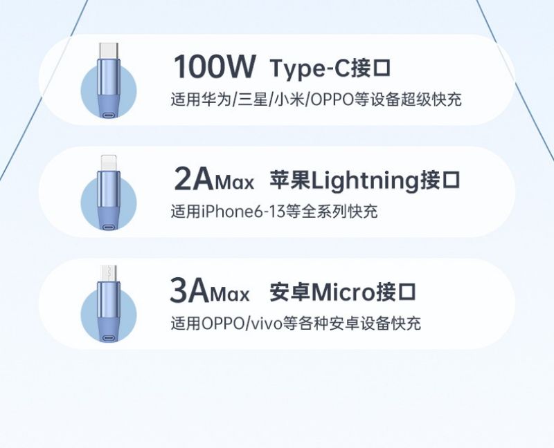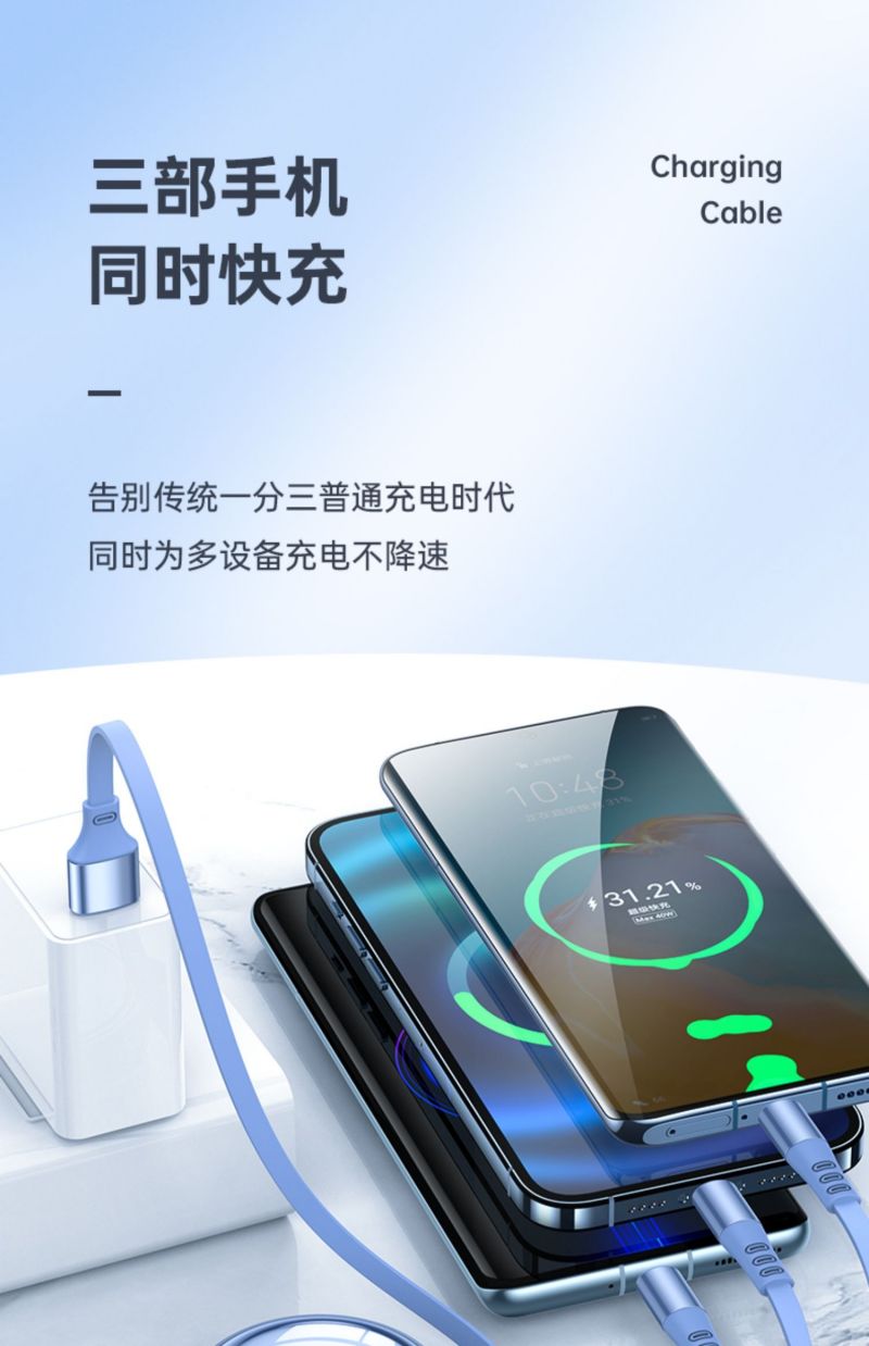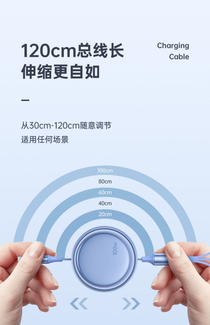 商品名称:LICHEERS/领臣1.2米100W超级快充三合一伸缩数据线-风趣蓝LC-518