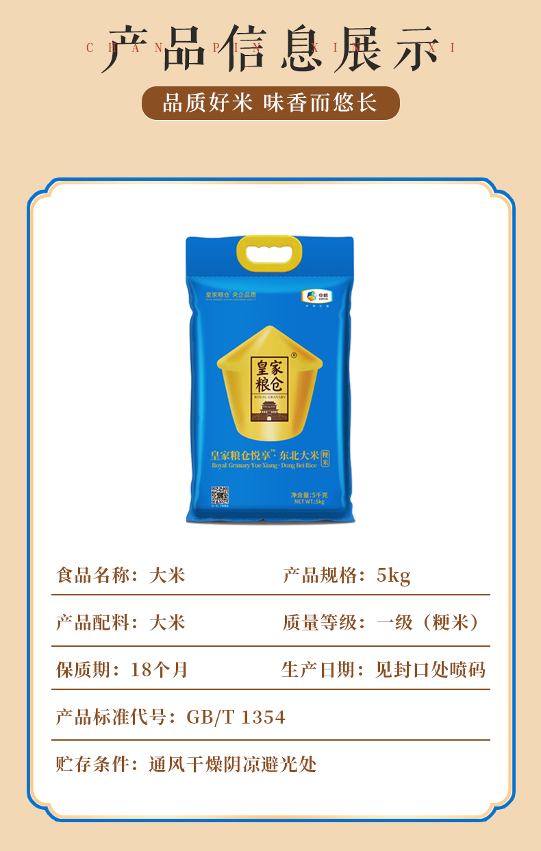 商品名称:中粮皇家粮仓悦享东北大米5kg