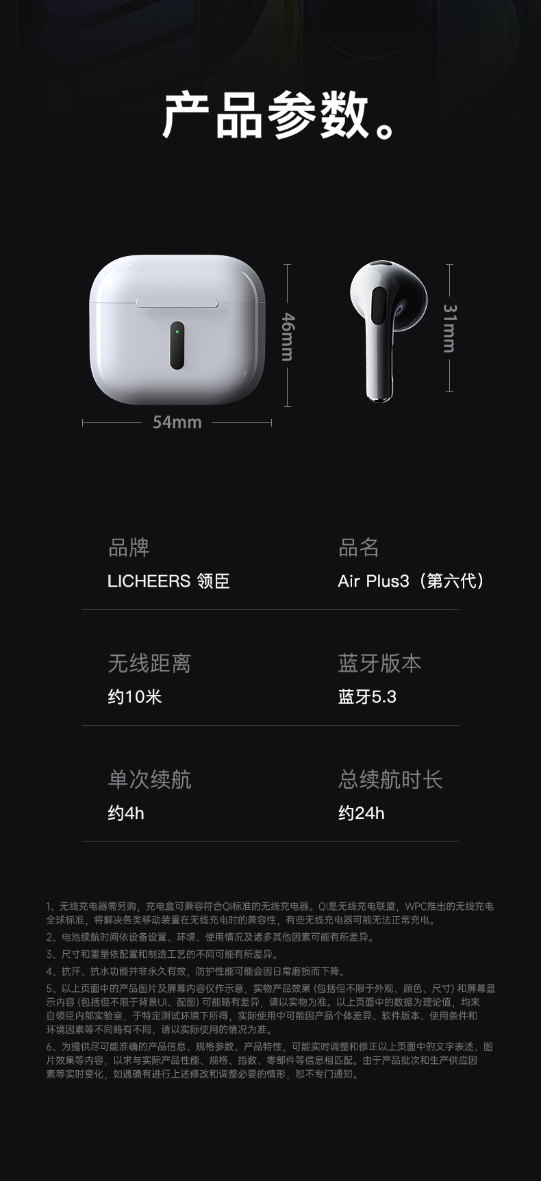 商品名称:LICHEERS/领臣入耳式第六代无线蓝牙耳机Air Plus3
