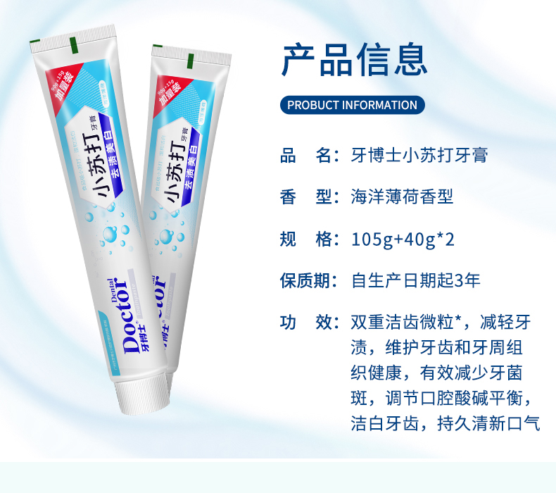 商品名称:牙博士小苏打去渍美白牙膏105g+40g*2