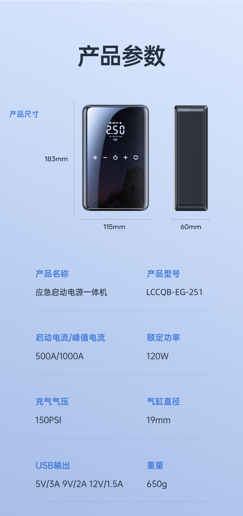 商品名称:LICHEERS/领臣车载便携式应急启动电源LCCQB-EG-251