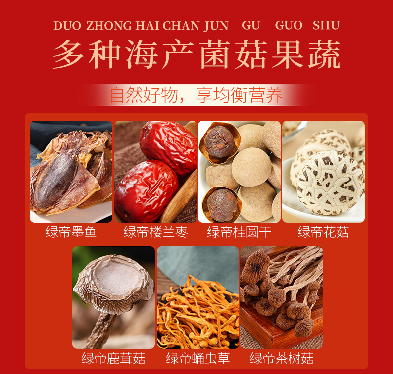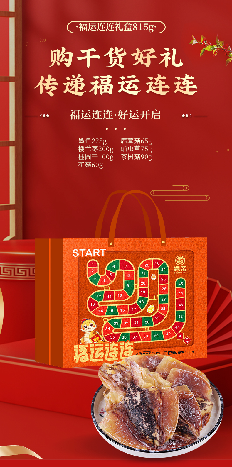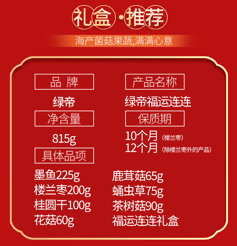 商品名称:GREEN KING/绿帝福运连连海产菌菇干货礼盒815g