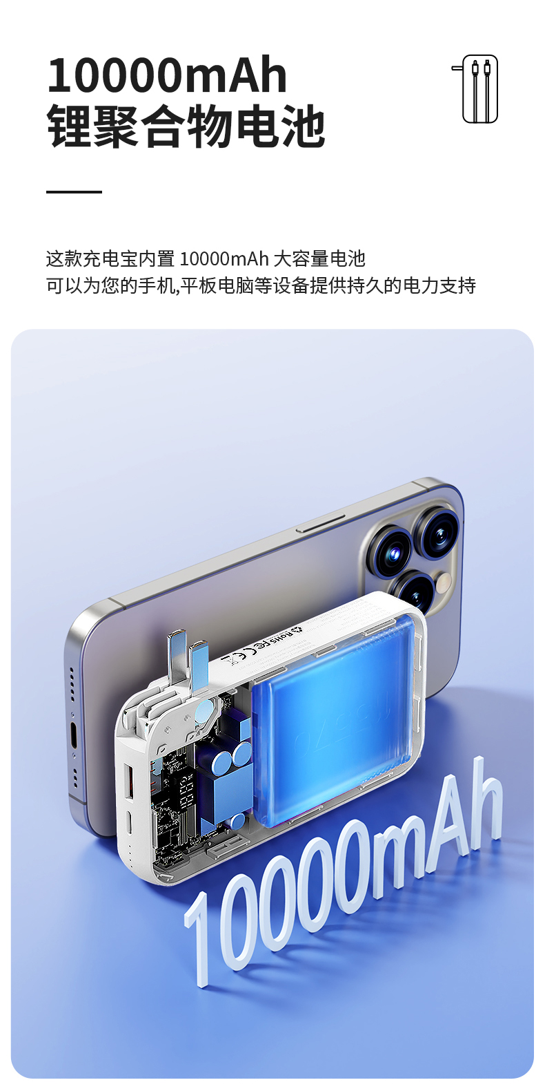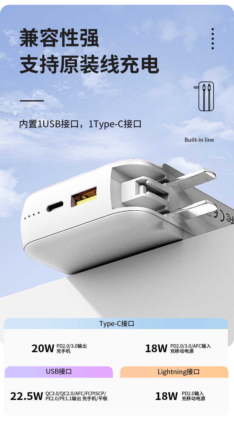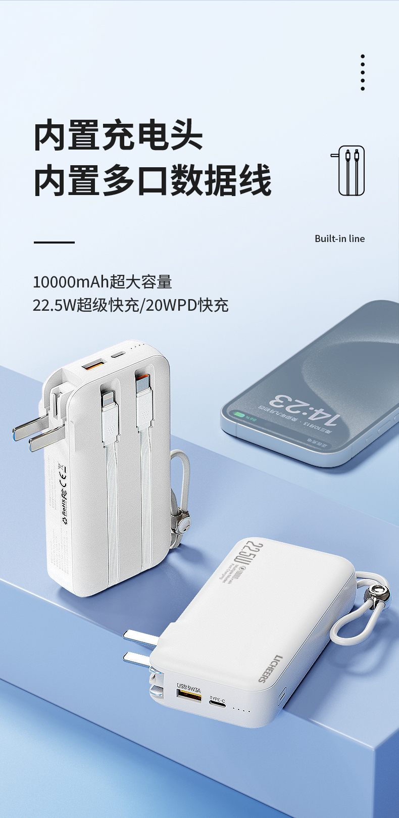 商品名称:LICHEERS/领臣小金球10000毫安AC充电器多功能移动电源PS-D10