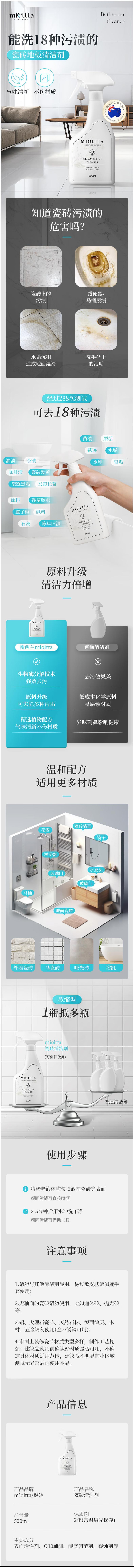 商品名称:MIOLTTA/魅她瓷砖地板清洁剂500ml*2瓶MITA24103
