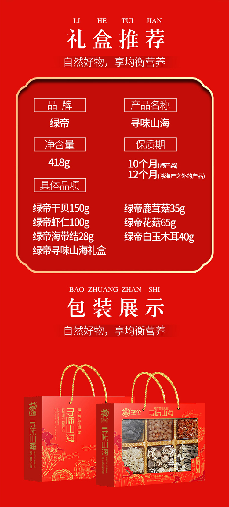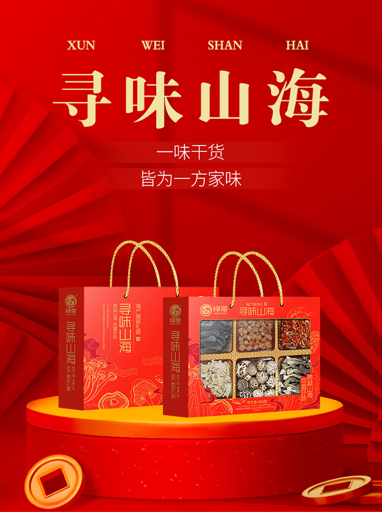 商品名称:GREEN KING/绿帝寻味山海海产菌菇干货礼盒418g