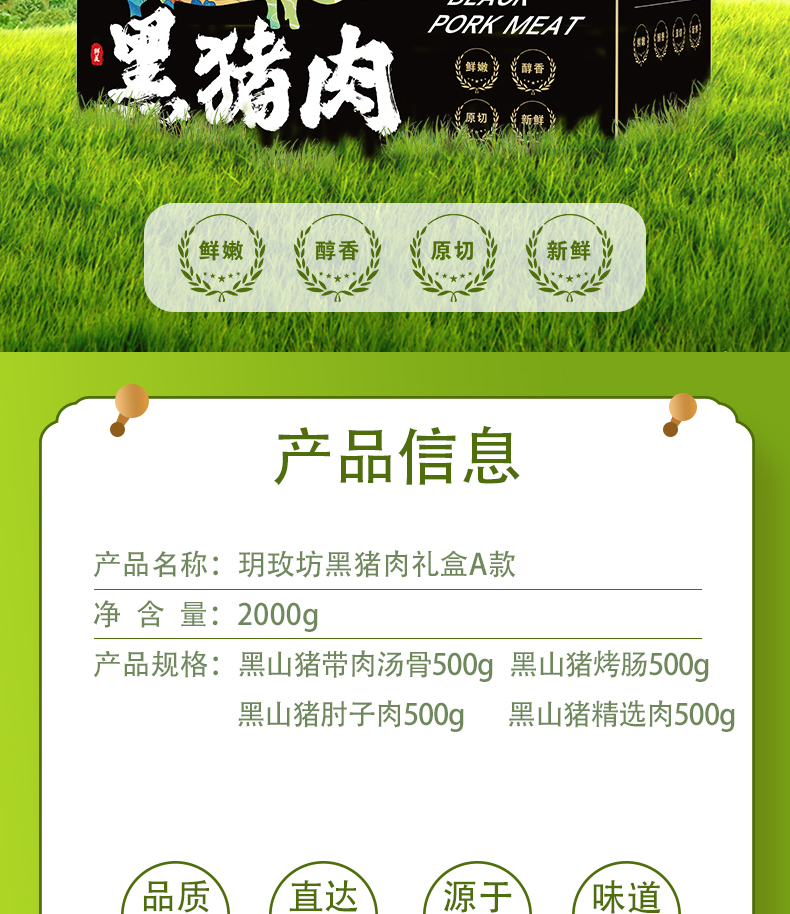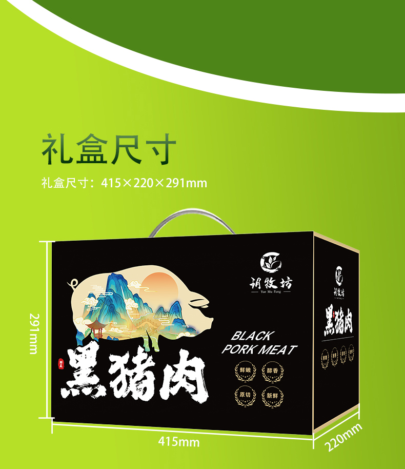 商品名称:【顺丰配送】玥牧坊黑猪肉礼盒A款2000g