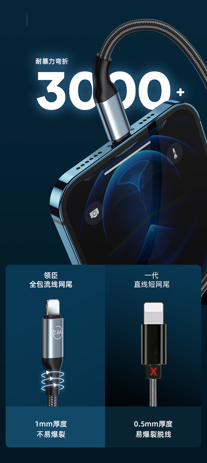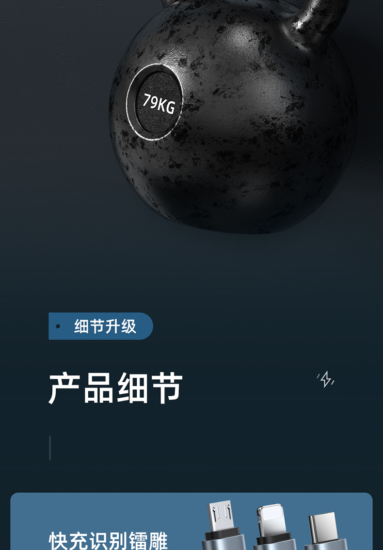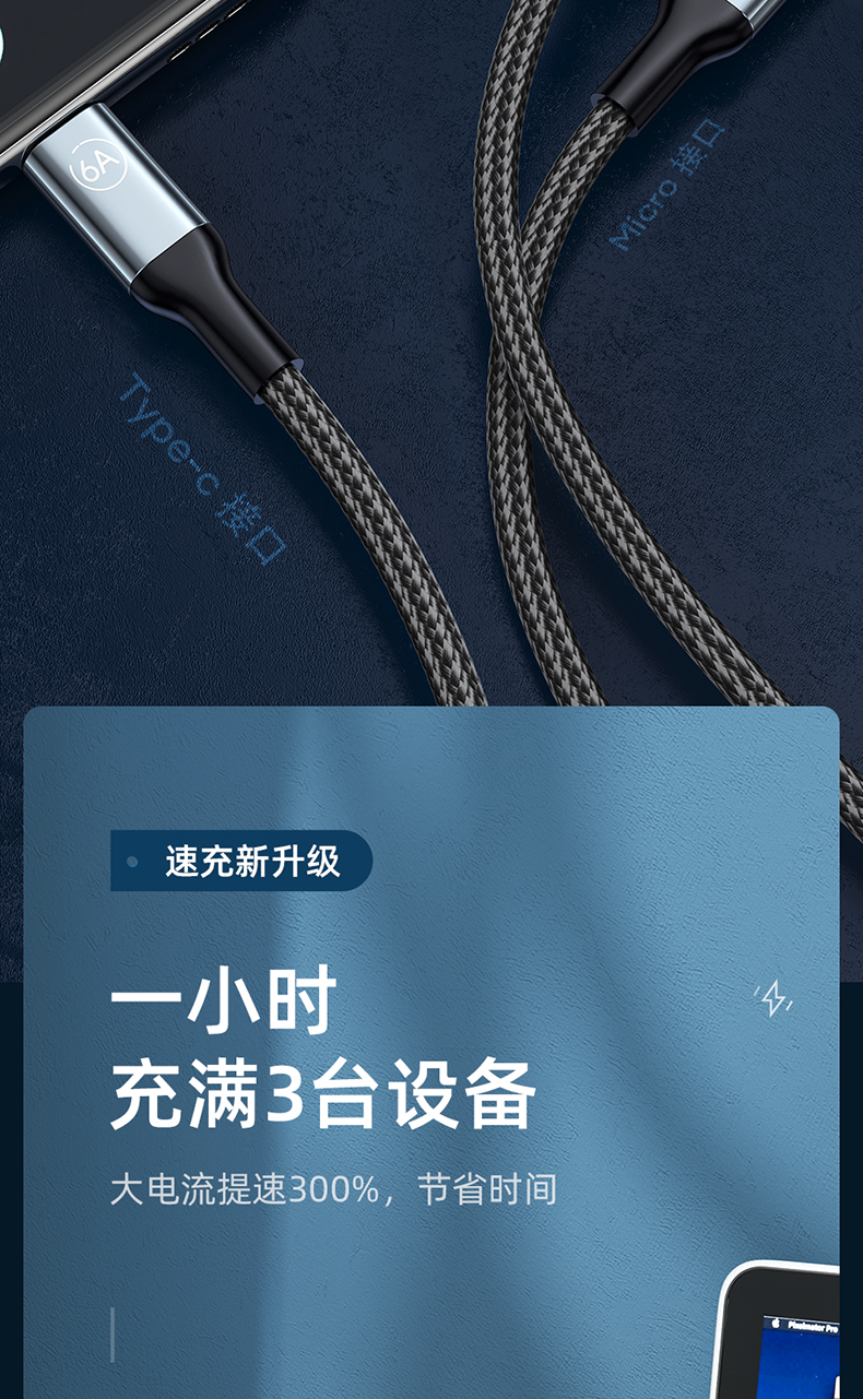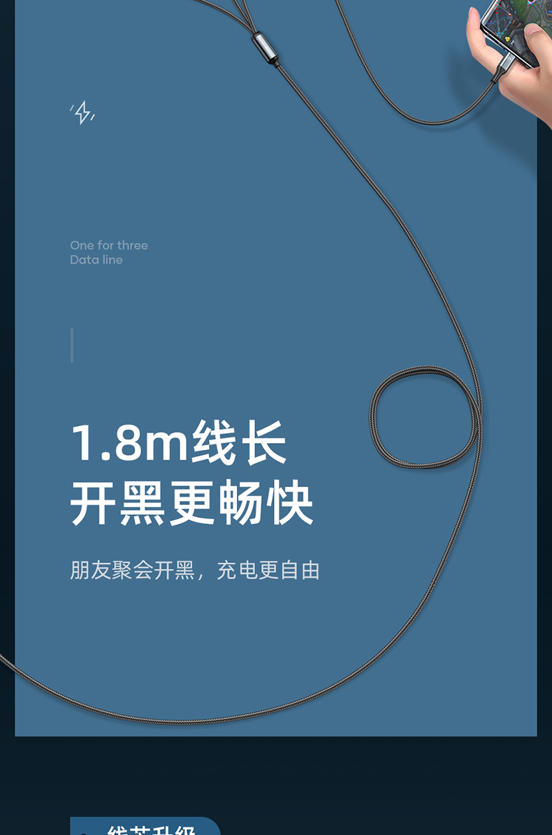 商品名称:LICHEERS/领臣1.8米66W一拖三铝合金快充数据线LC-439