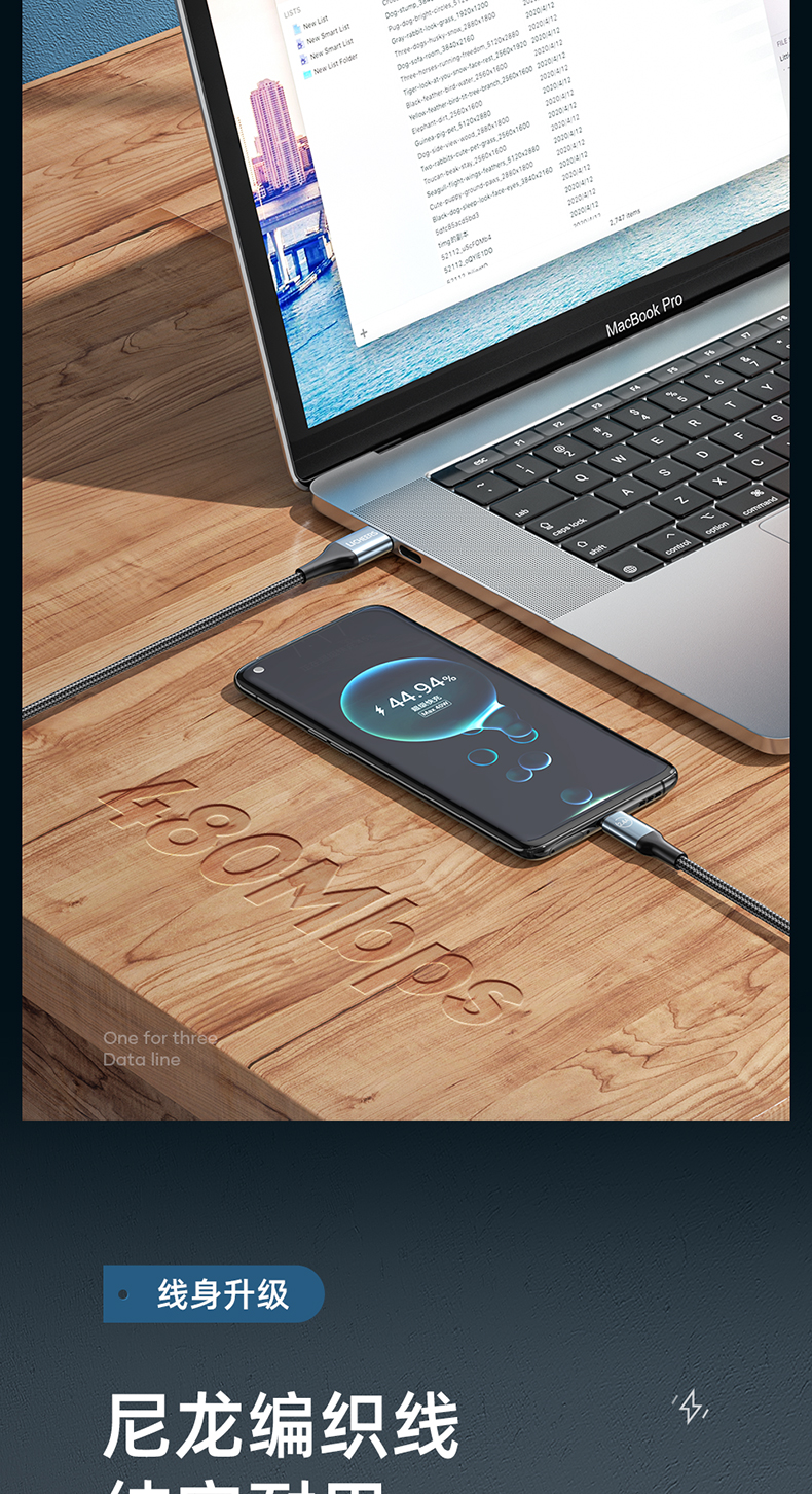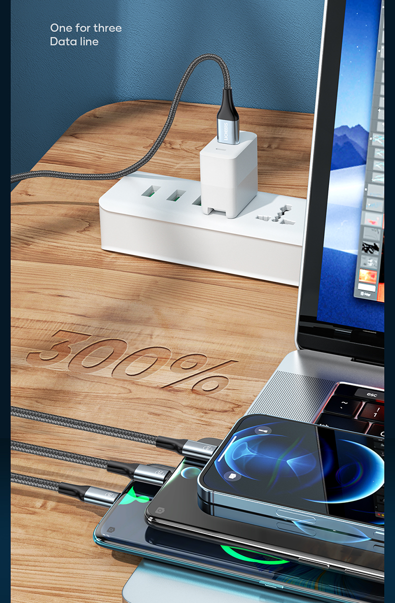 LICHEERS/领臣1.8米66W一拖三铝合金快充数据线LC-439