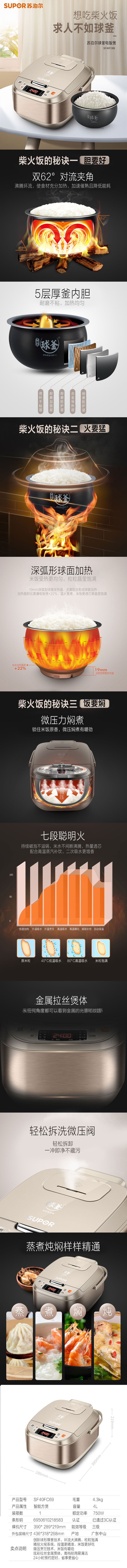 商品名称:SUPOR/苏泊尔4升球釜电饭煲SF40FC69