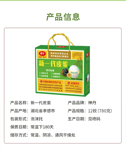 商品名称:神丹膜法流心皮蛋12枚约780g