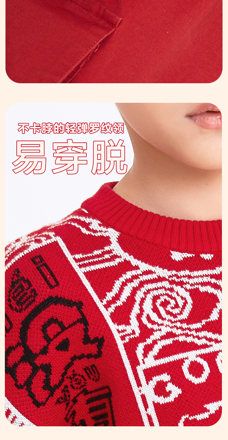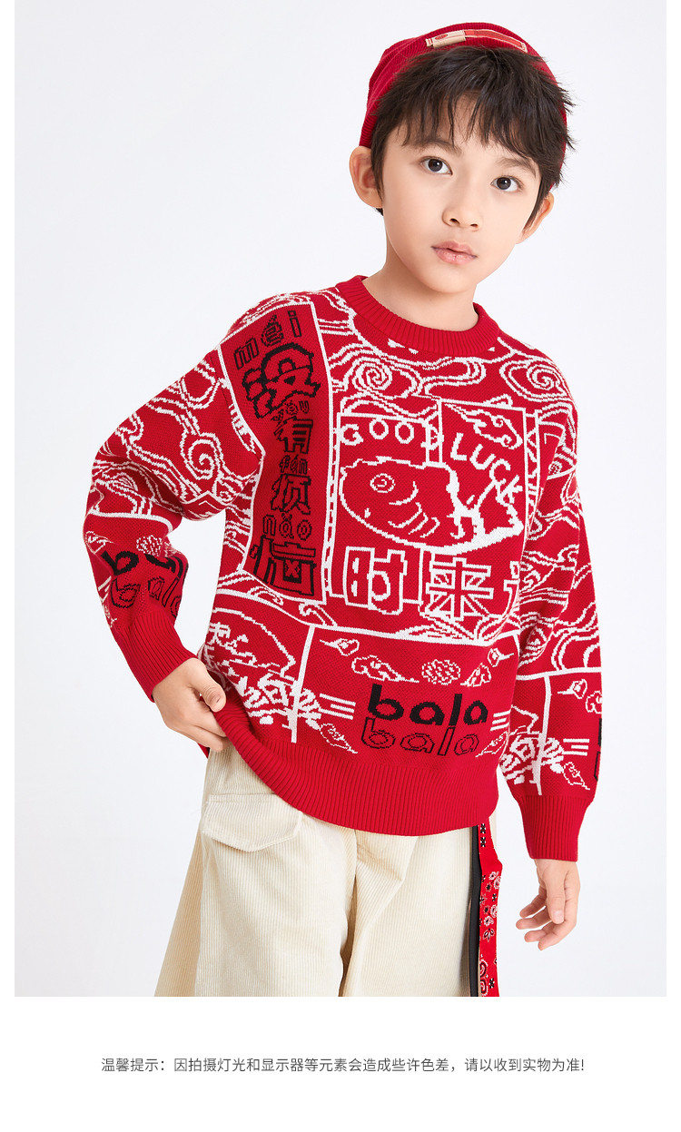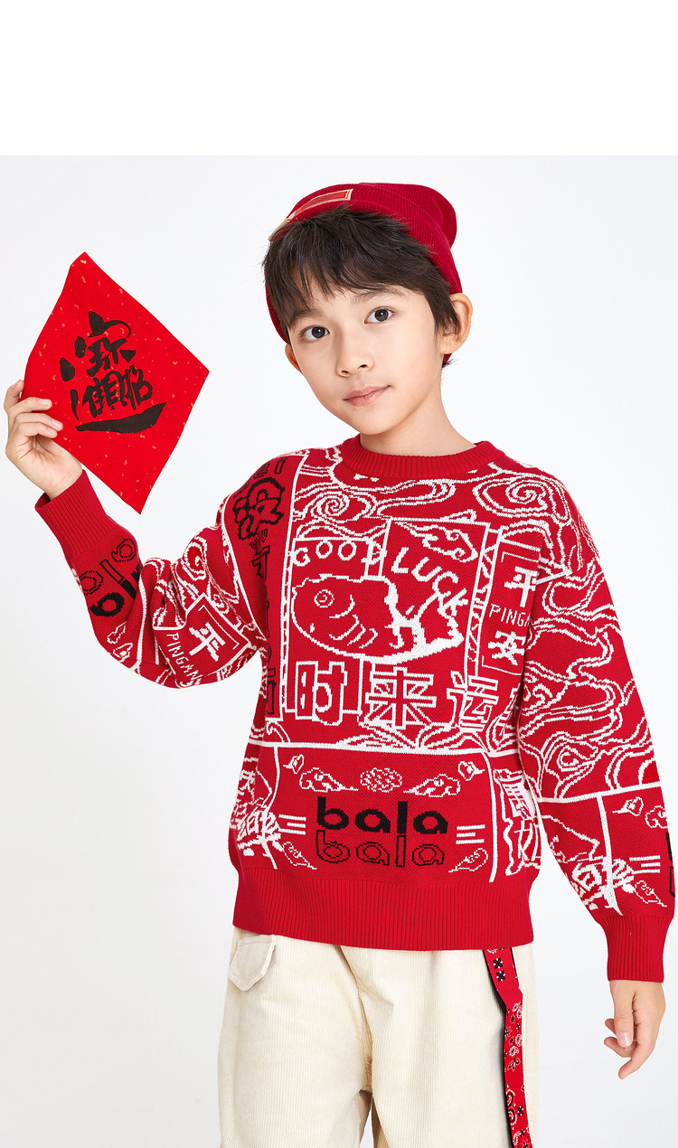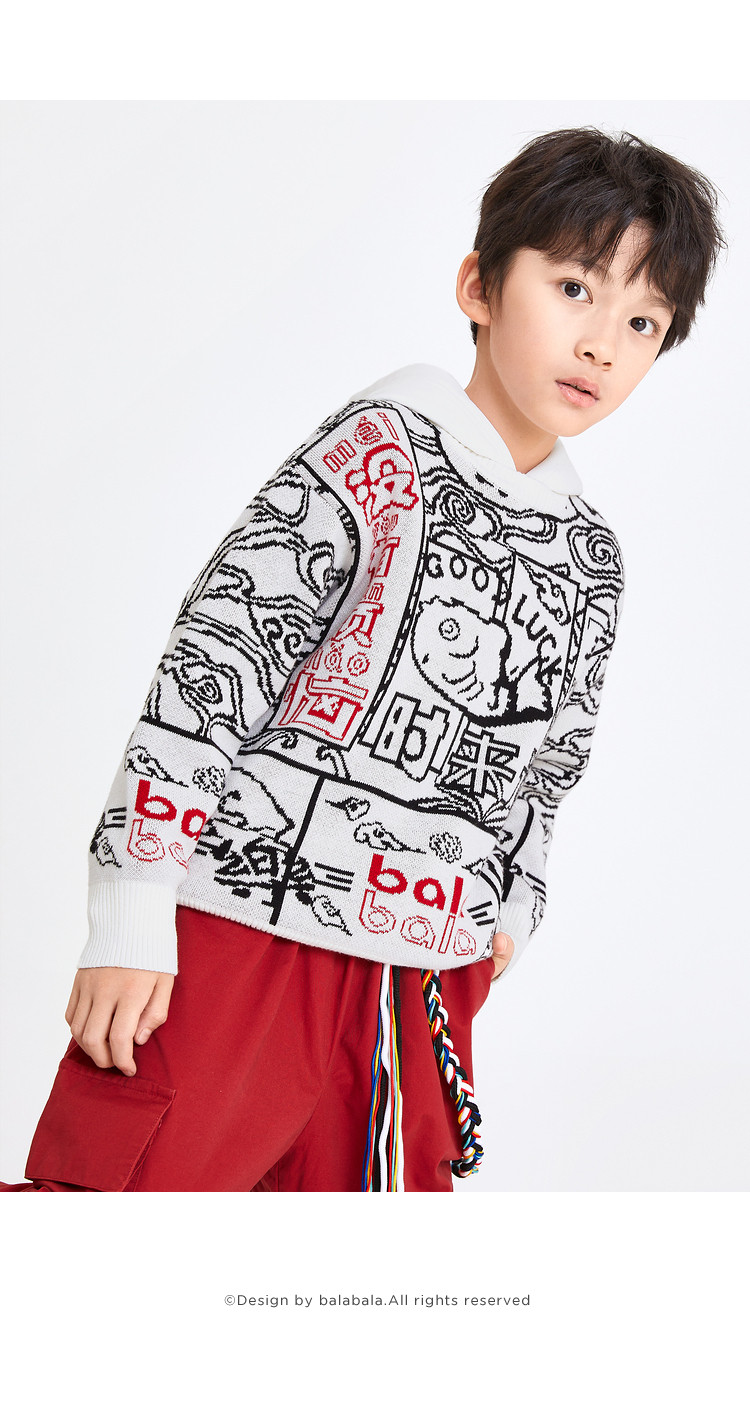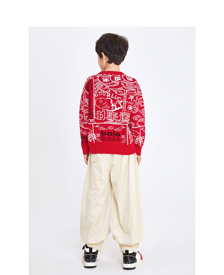 商品名称:亲子装纯棉儿童毛衫男童女童套头毛衣春秋款童装大童国风印花上衣 259205