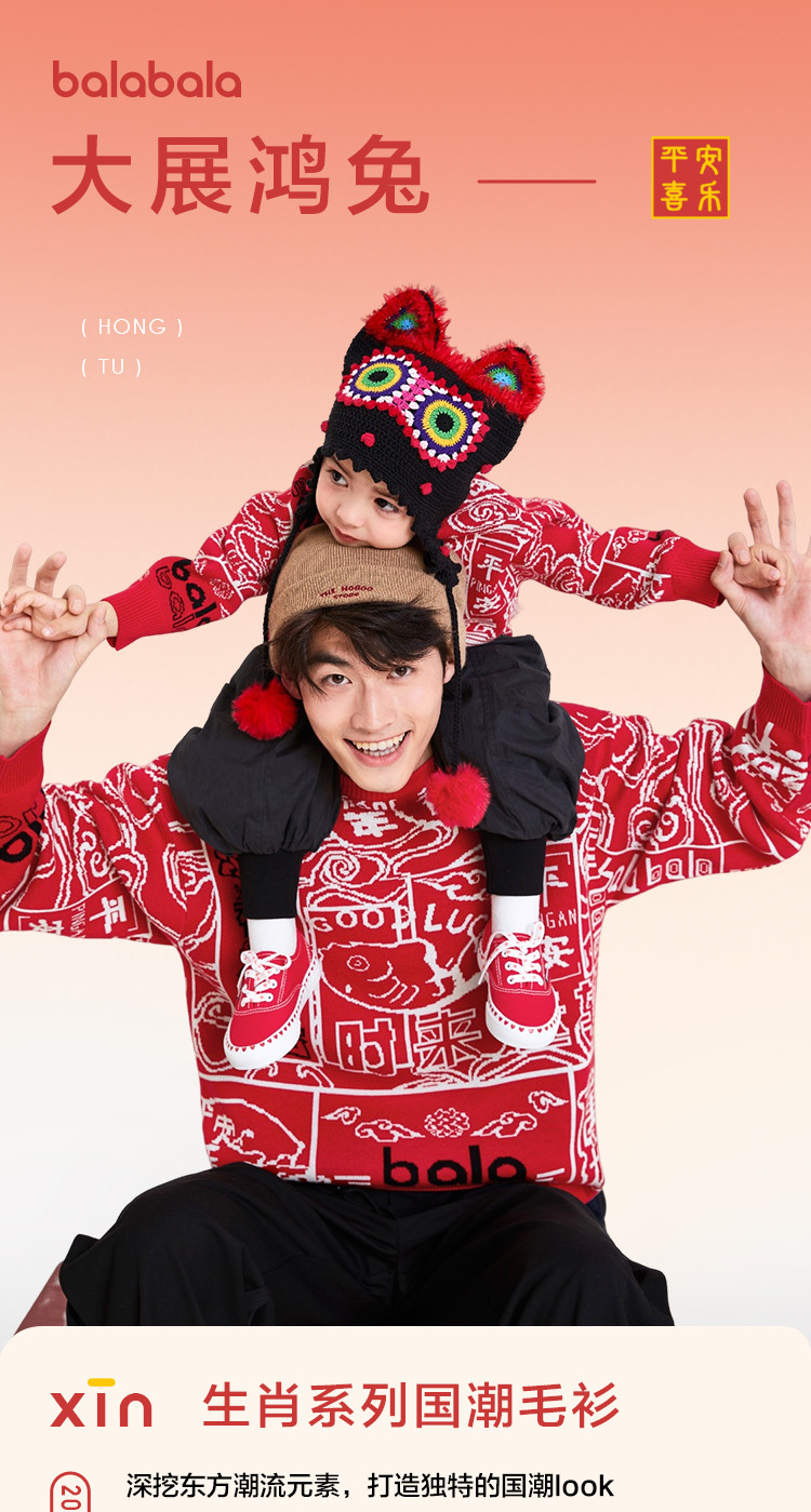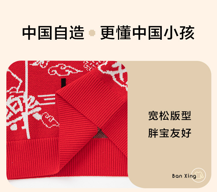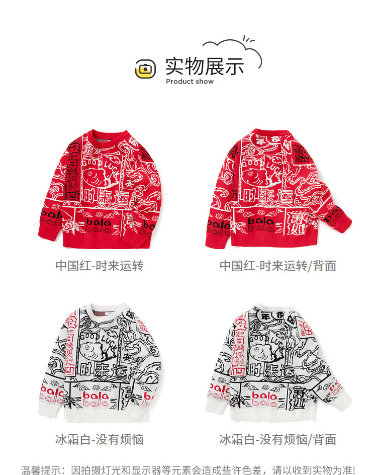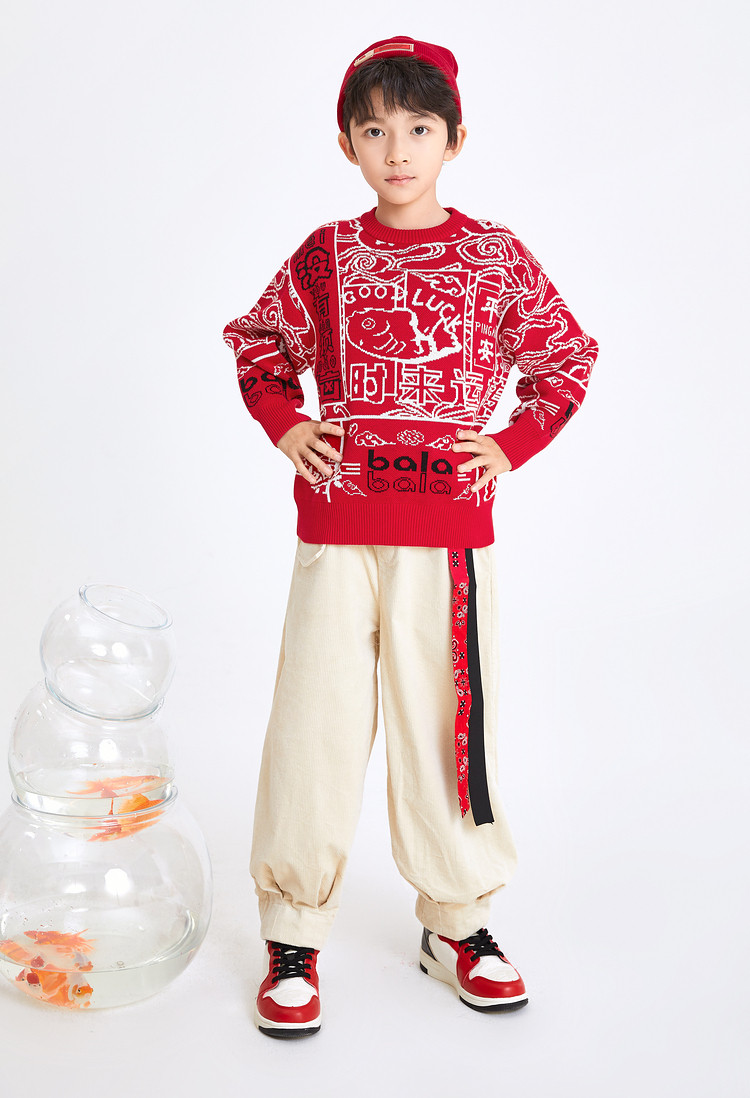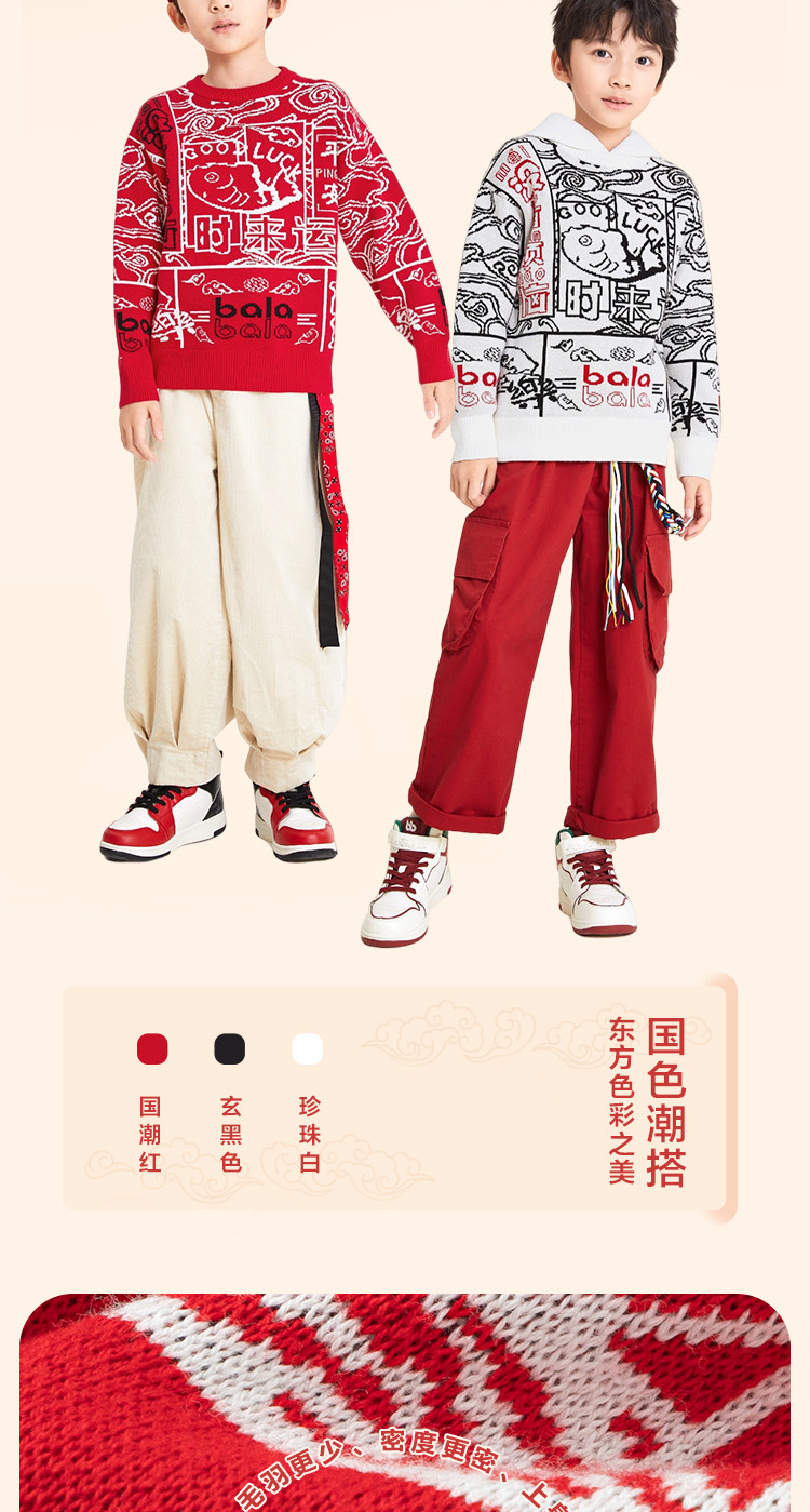 商品名称:亲子装纯棉儿童毛衫男童女童套头毛衣春秋款童装大童国风印花上衣 259205