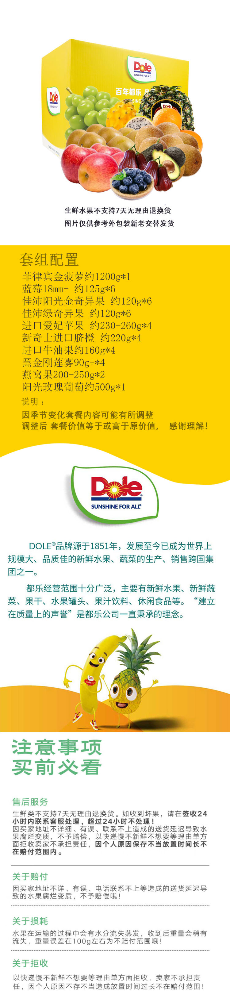 商品名称:【京东/顺丰配送】Dole/都乐2025年端午款水果套餐礼盒约7090g