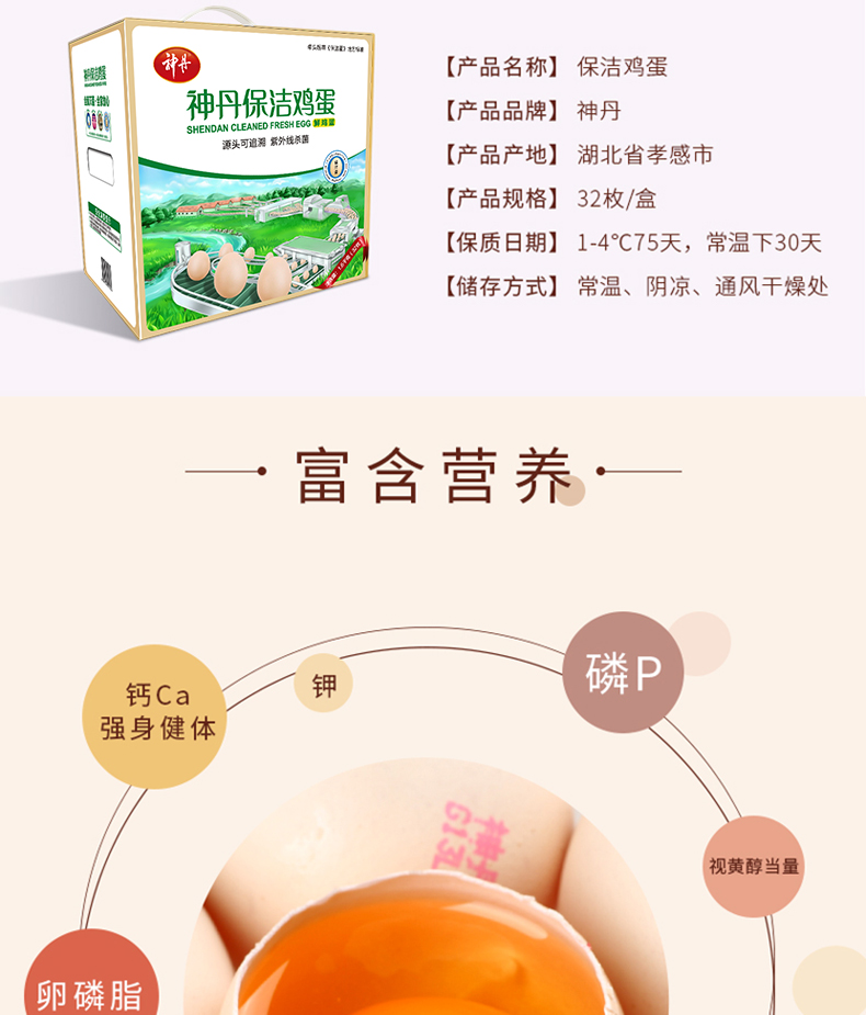 商品名称:神丹保洁鸡蛋礼盒32枚约1600g