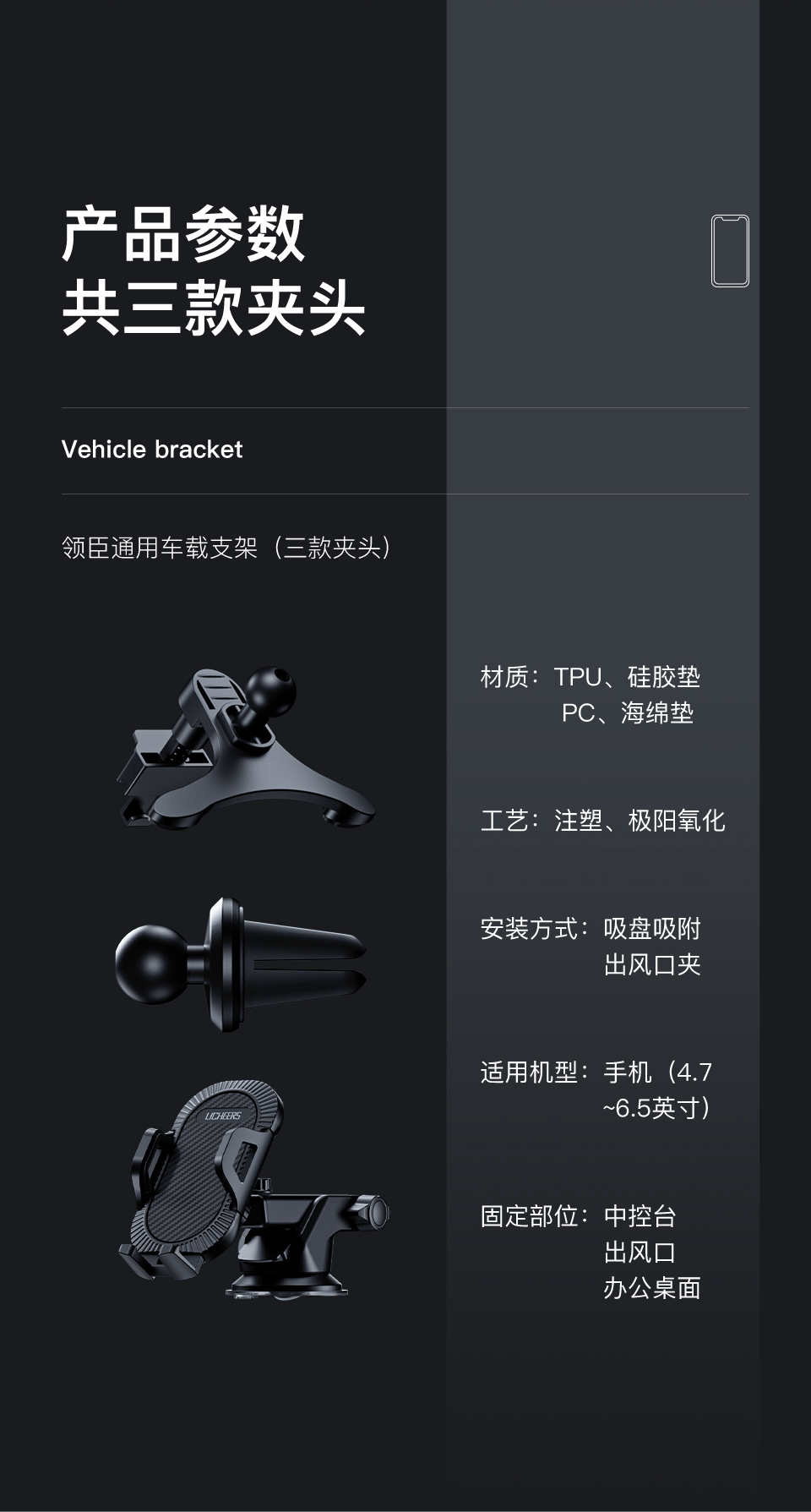 商品名称:LICHEERS/领臣碳纤维三用款车载支架LC-375