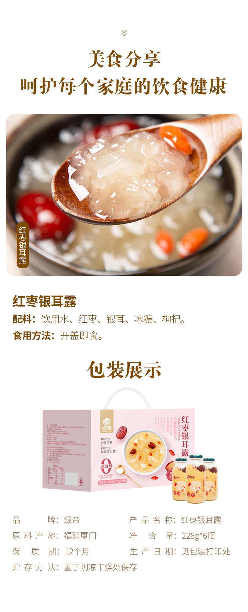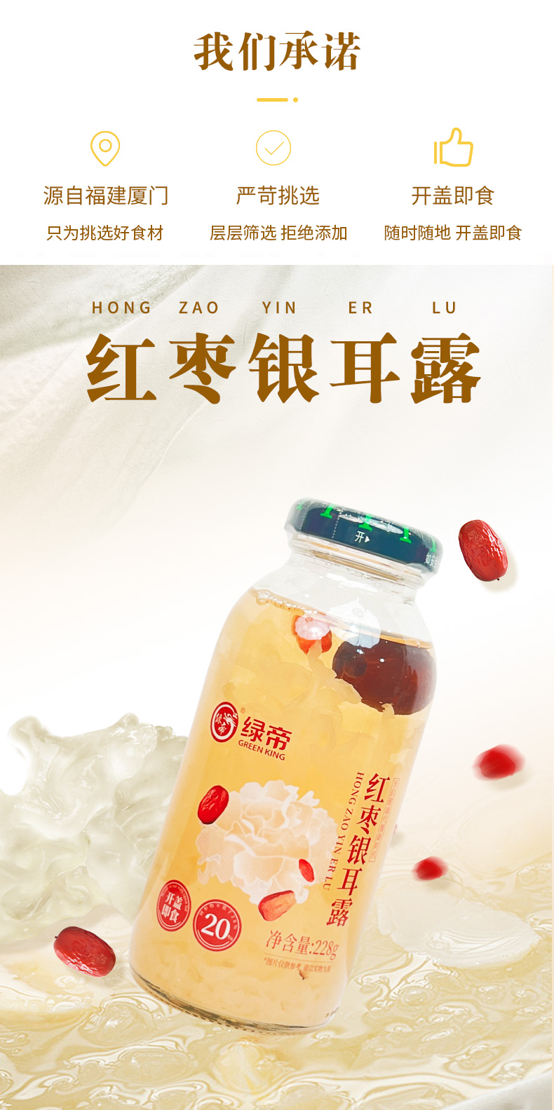 商品名称:GREEN KING/绿帝红枣银耳露228g*6瓶