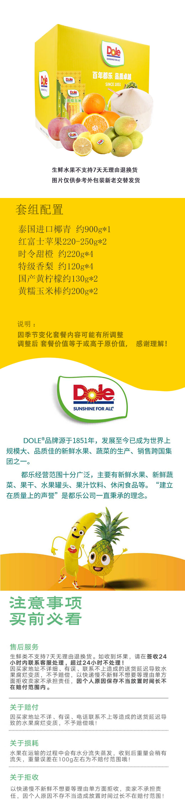 商品名称:【京东/顺丰配送】Dole/都乐2025年端午款水果套餐礼盒约3360g