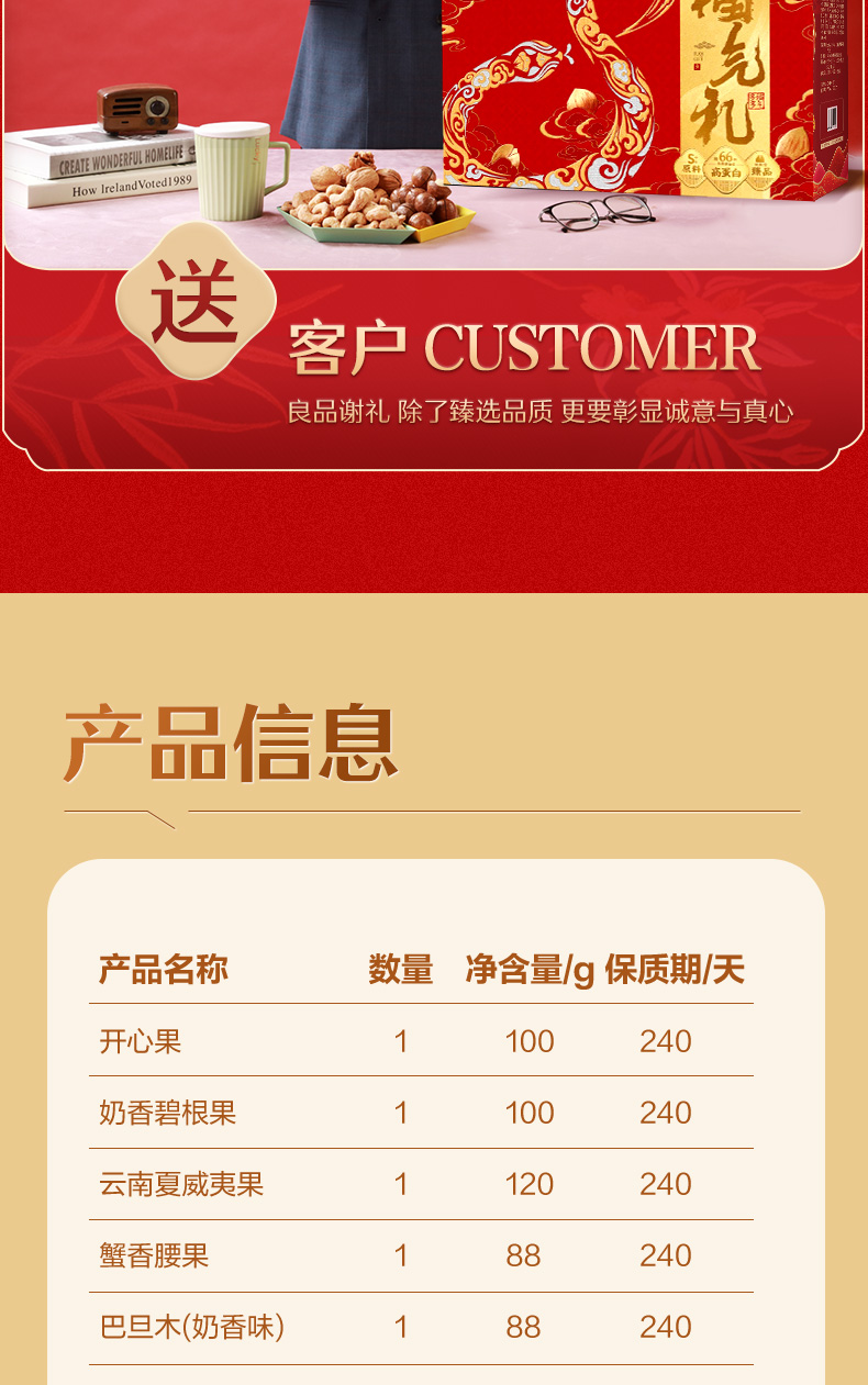 商品名称:良品铺子福气礼零食坚果礼盒2376g