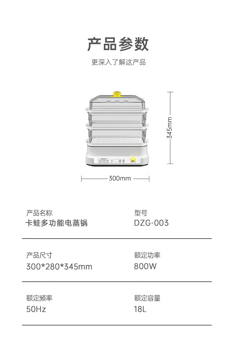 商品名称:SmartFrog/卡蛙18升多功能电蒸锅DZG-003