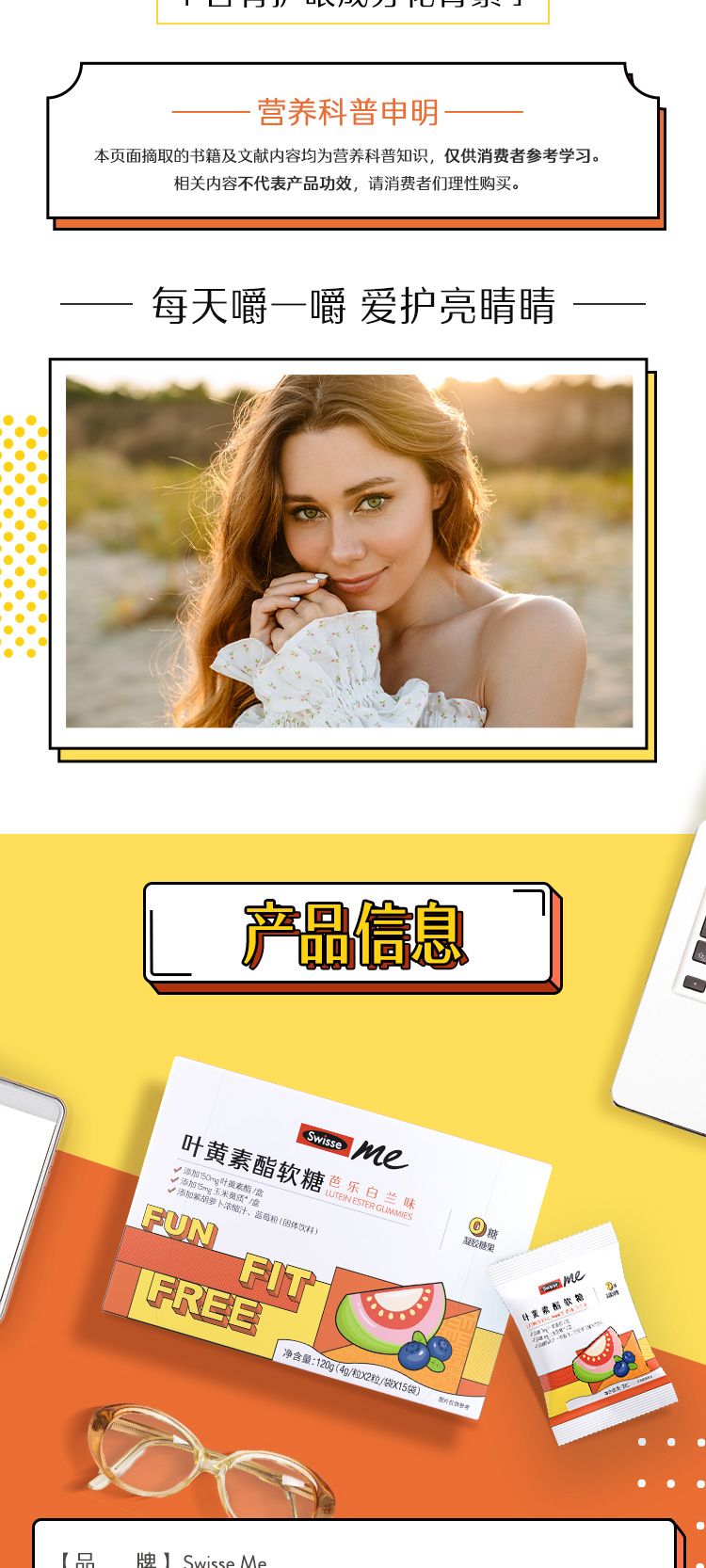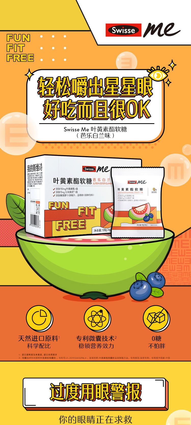 商品名称:Swisse/斯维诗 叶黄素酯软糖 芭乐白兰味(2粒*15袋/盒)