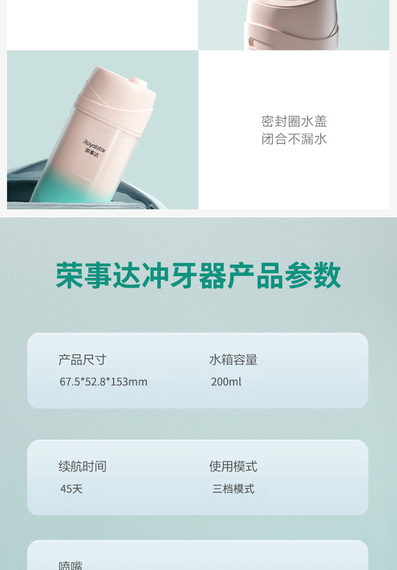 商品名称:Royalstar/荣事达便携式电动冲牙器RSD-A60XR