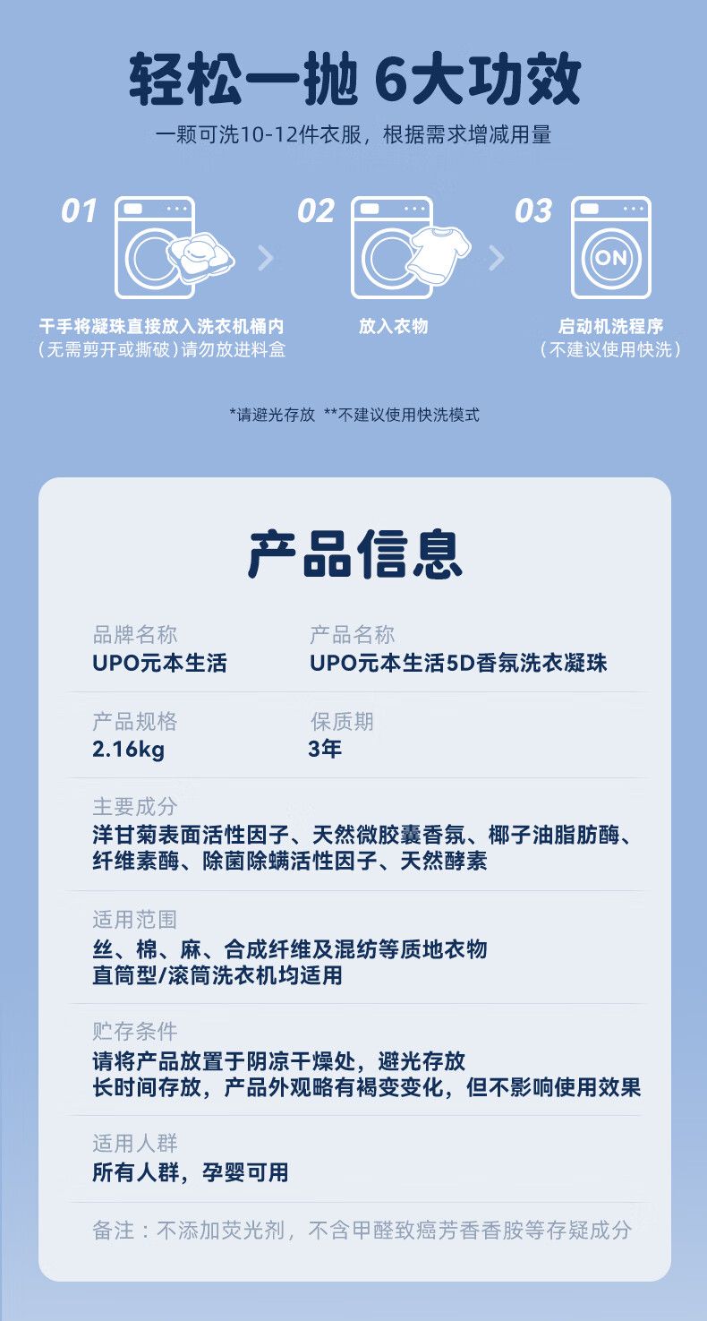 商品名称:元本生活/UPO5D香氛洗衣凝珠12g*180颗/桶