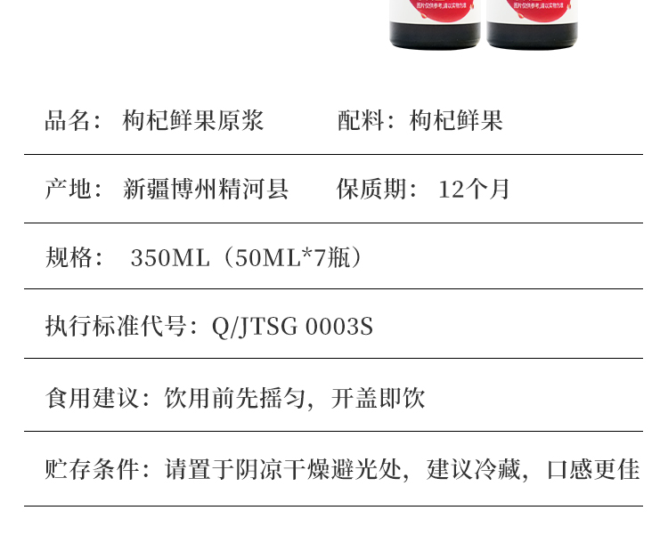 商品名称:石杞河枸杞鲜果原浆50ml*7瓶